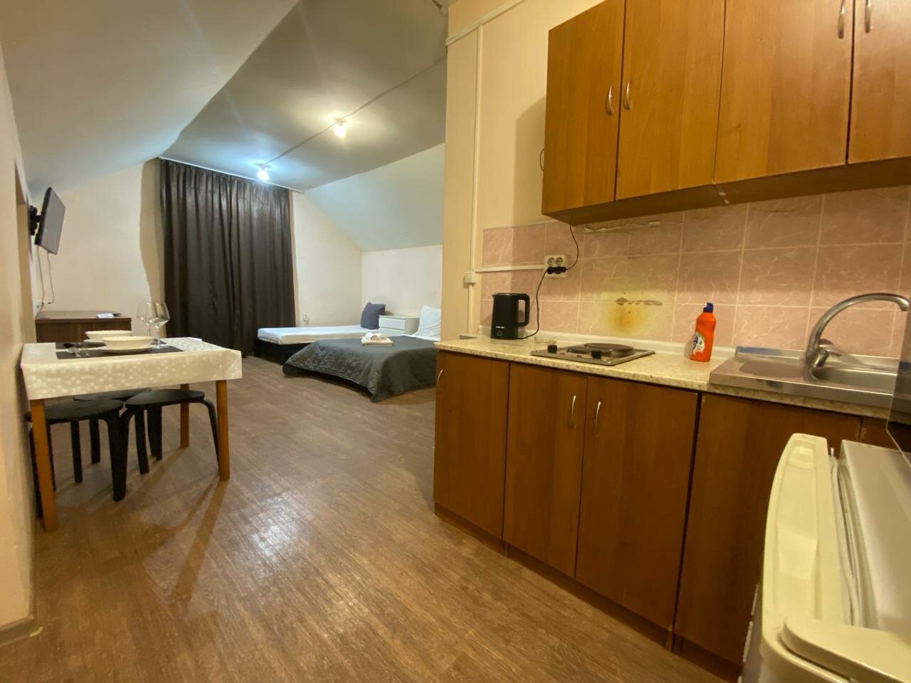 Просто жесть честно говоря. Бронировал через Яндекс путешествия, всегда бронирую через Яндекс и всегда фото соответствует действительности, а отзывы отображают более менее реальную суть места. Но в этот раз Ожидание/Реальность просто на разных уголках карты. 1. В НОМЕРАХ РАЗРЕШЕНО КУРИТЬ! Номера прокуренные, мебель, матрасы, подушки, одеяла, все пропитано дымом. 2. К ЗАПАХУ КУРЕВА ДОБАВЛЯЕТСЯ ЗАПАХ ЗАТХЛОСТИ и СЫРОСТИ. Как будто номер ни когда не проветривают. 3. НОМЕРА ГРЯЗНЫЕ. Я не говорю про пыль и мусор по углам, его там ни кто не убирает. Стены в номерах забрызганы, грязью, кухня в жиру. Нахождение максимально не приятно. 4. ИНТЕРЬЕР НЕ ТОТ ЧТО НА ФОТО. Номер совсем другой, ни как в объявлении при бронирование, хозяйка сказала, что у них много номеров и конкеретно как на фото сейчас занят но он такой же. Останавливались на одну ночь, презло что были в Подольске проездом и в 4 утра уже уехали из этого места.