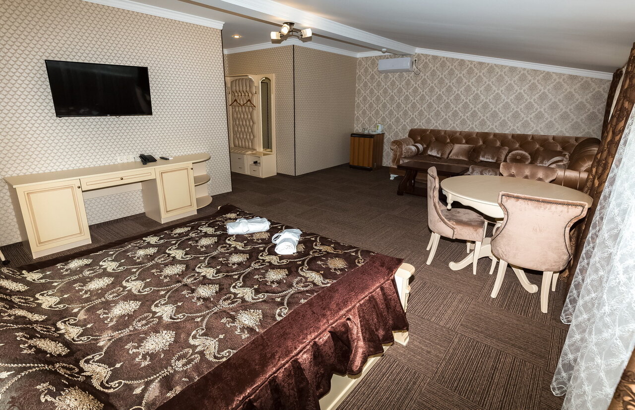 Сам отель очень качественный. Номера просторные , есть все необходимое, место тихое. Ближе к выезду из города в сторону Армавира, очень подходит, чтобы переночевать и продолжить путь. Завтрак на первый взгляд объёмный, но в итоге все не то. Была каша, которую есть было не возможно, какое то пирожное, которое вообще на завтрак не обязательно и единственное пригодное, яичница. Кофе растворимый. Завтрак не входит в стоимость номера.