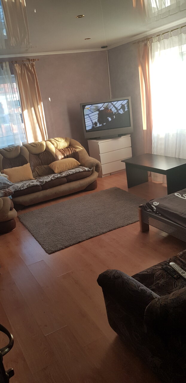 Хороший дом, проживали в конце января — начало февраля. Останавливались вдесятером, спальных мест достаточно для данного количества, даже ещё оставались свободные места. В доме есть музыкальный центр, телевизоры. Сауна очень порадовала. Мужчины каждый день играли в бильярд. Холодильник, плита — всё рабочее. Готовили самостоятельно, посуды хватило на нашу компанию. Что особо порадовало, так это туалет и душ в каждой комнате! Постельных принадлежностей и полотенец предостаточно. Хочу выразить благодарность хозяйке дома — Анастасие. Спасибо вам большое! Всё было на хорошем уровне. До центра ехать минут 15, добирались на своей машине, которую парковали во дворе. Мест предостаточно для нескольких авто. Рядом с домом небольшой магазинчик, в котором можно купить всё необходимое. Спасибо ещё раз! Буду рекомендовать знакомым)