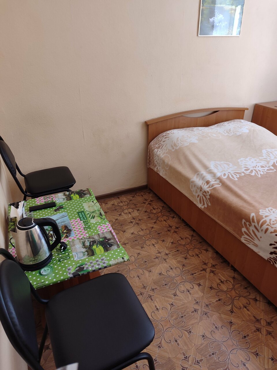 В гостинице недавно сделан небольшой ремонт с использованием самых дешёвых материалов — это видно. Из плюсов — возможность взять на ресепшене чайник. Из минусов — прокуренные номера, от номера к номеру глубина запаха разниться, но он есть везде: занавески, покрывала, обои — всё это имеет стойкий запах табачного дыма . Номера тёмные, в прихожей вовсе не предусмотрено освещения. Утром достаточно длительное ожидание горячей воды.