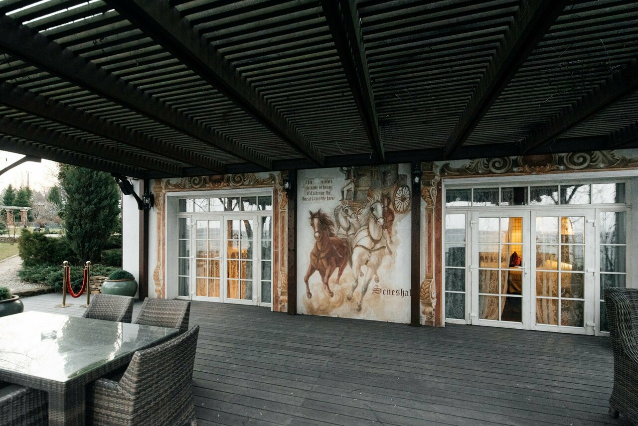 Интерьер просто сногсшибательный! Территория маленькая ,но очень ухоженная. Номера красивые, но очень маленькие( большинство) . как то странно но в номерах отсутствуют элементарные вещи ( чайник, весы, фен и т д) меню в ресторане скудновато, но очень вкусно приготовлено. Обслуживание 10 баллов!!!! Но делать вообще нечего кроме как бухать и заниматься любовью ( особенно в осеннюю пору) детям откровенная скука. Но красотища какая ( через призму запотевшей рюмки)