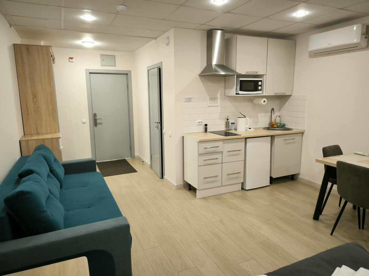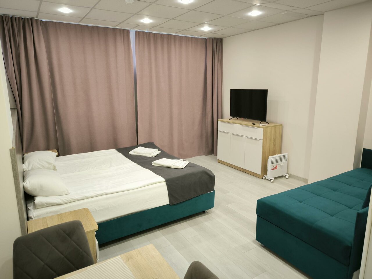 Апартамент-студия Colden Time с двуспальной кроватью и кресло-кроватью на 12 этаже.