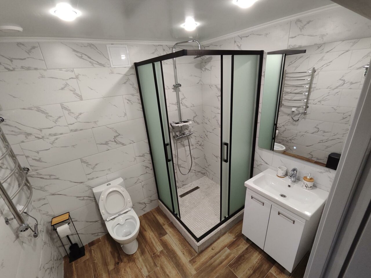 Номер #1 Просто огромная душевая кабина! Здорово! Большой просторный номер! Из минусов очень высокая влажность. Полотенца не успевают за ночь просыхать. Просыпаешься с ощущением что все вокруг мокрое! Из самых главных минусов это автомобиль который будит тебя каждое утро в 7:30 по таймингу. Заводят машину которая громко пукает минут 5-10 затем удаляется. Здорово конечно, но можно наверно парковаться с торца дома, чтобы не мешать местным жителям и гостям гостиницы. Но человек видимо глупый. Если номер будет выходить на воду думаю такой проблемы не будет. Хотя… Второй раз бы сюда не стал заселяться. Полотенца дают 1 раз и до конца проживания. Имейте это ввиду перед тем как будете бросать из в унитаз (это конечно же шутка про отбитых туристов)