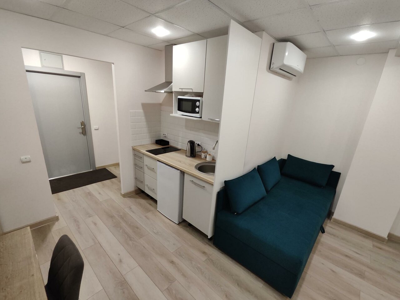 Апартамент-студия Relax Time с двуспальной кроватью на 12 этаже.