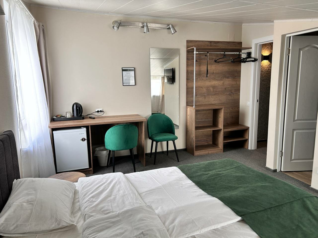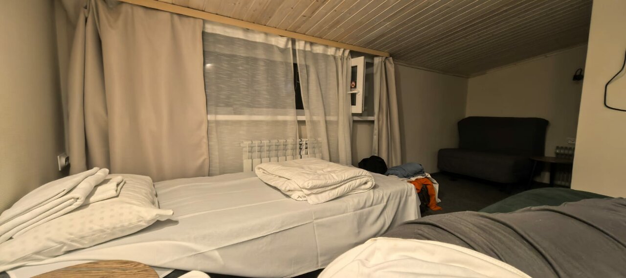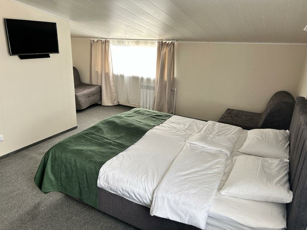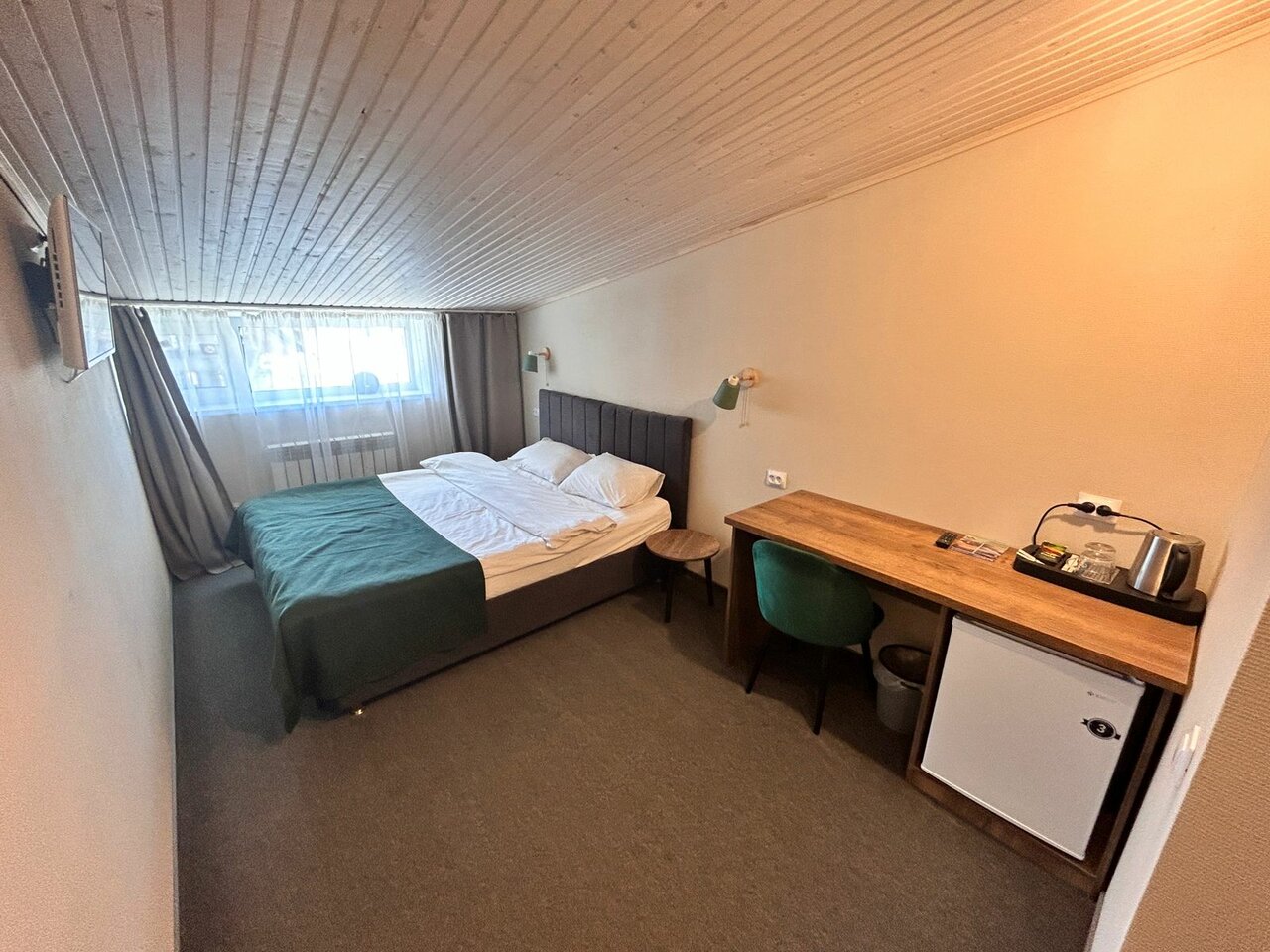 Остановились на одну ночь. Нас двое, на машине. В Сортавале выбирать особо не из чего 🙂 и после долгих мучительных поисков без букинга остановились здесь + номер полностью соответствует фото: белоснежные полотенца, вкусное чистое постельное белье, туалет в номере, есть фен, прикроватные розетки, холодильник + бесплатная закрытая (!) парковка во дворе + изумительная девушка Алёна ! Оперативная обратная связь, бронь без предоплаты с подтверждением на почту !! (В других отелях просили перевести деньги по номеру телефона на Сбер ) Искренне рекомендую это место! Уютно, комфортно, приятный сервис