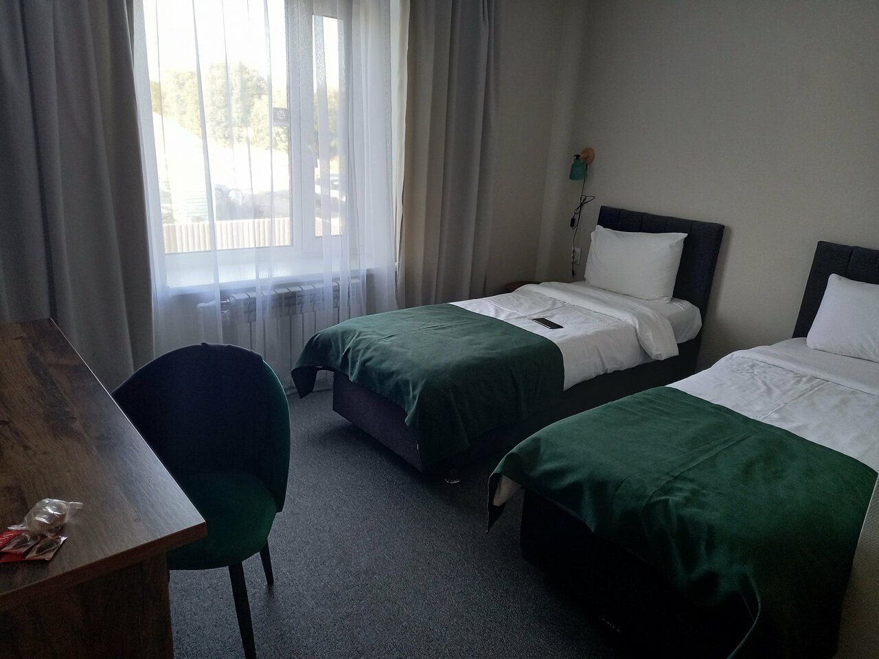 Отель чистый, аккуратный. Девушка администратор, сама доброта. В номере есть все, что должно быть по стандарту. Переночевали одну ночь, выспались, и поехали дальше, не волнуясь за машину (закрытая стоянка) рядом есть магазин купить покушать.