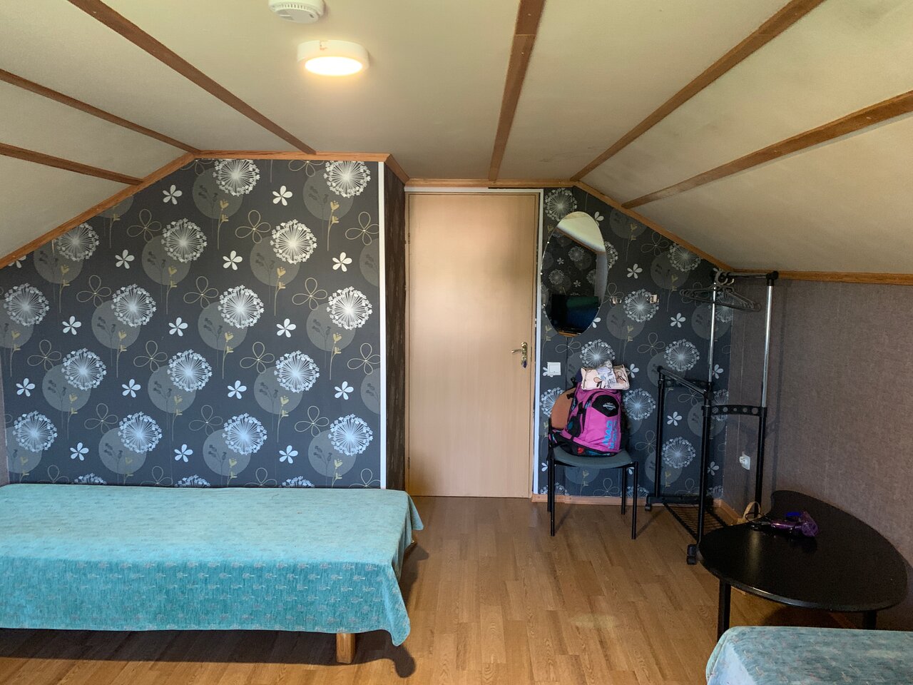 Удобства на этаже. Лестница на 3й этаж неудобная. В остальном хорошо. Вид красивый. Парковка большая. Интернет есть. Белье и полотенца не старые. Цена завышена.