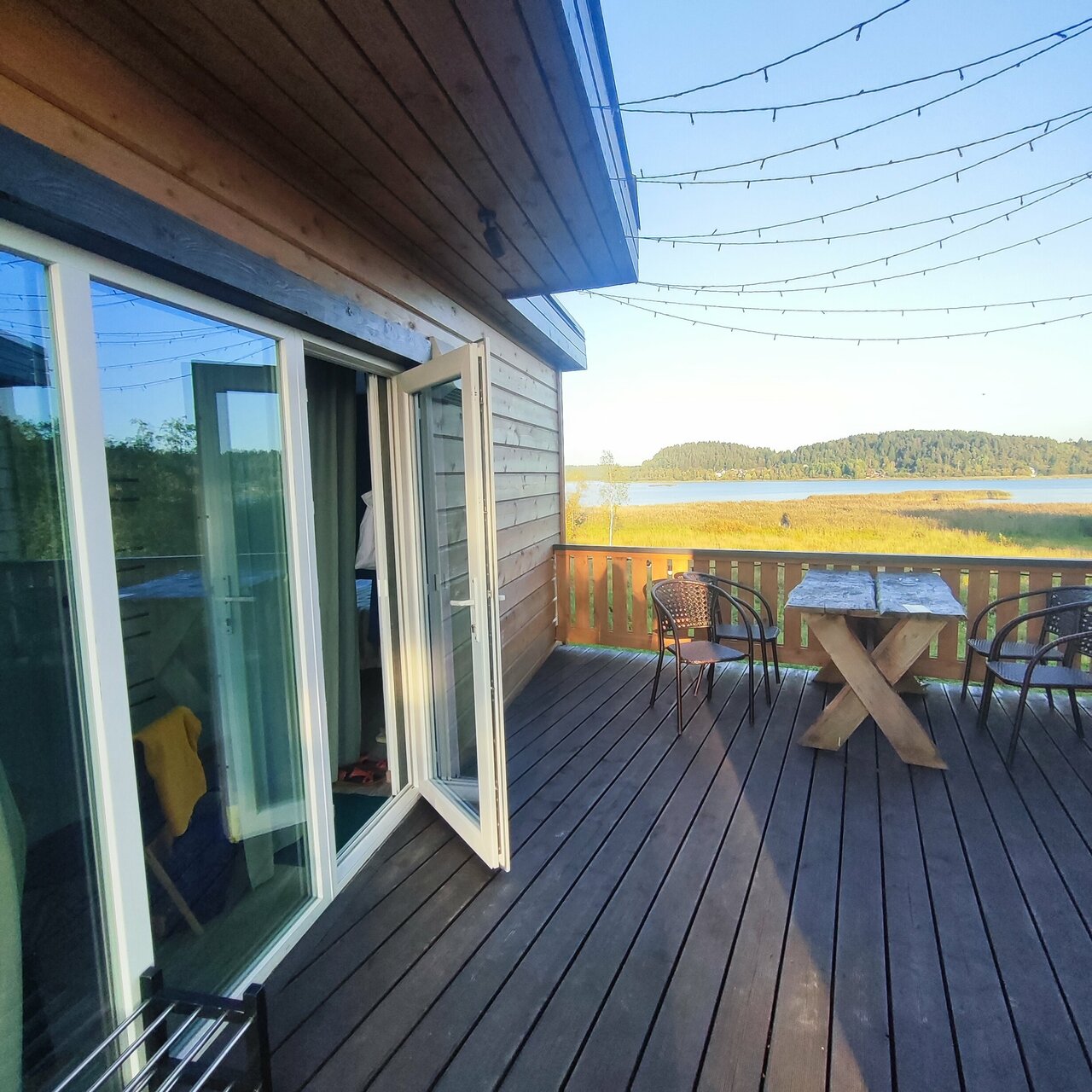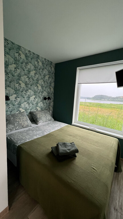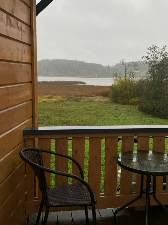 Хорошее, спокойное место. Домик маленький примерно 10 кв. м Окна выходят на залив. Можно сходить на экскурсии в парке — Крепость Викингов. Есть где порыбачить или просто провести время в тихой, спокойной обстановке