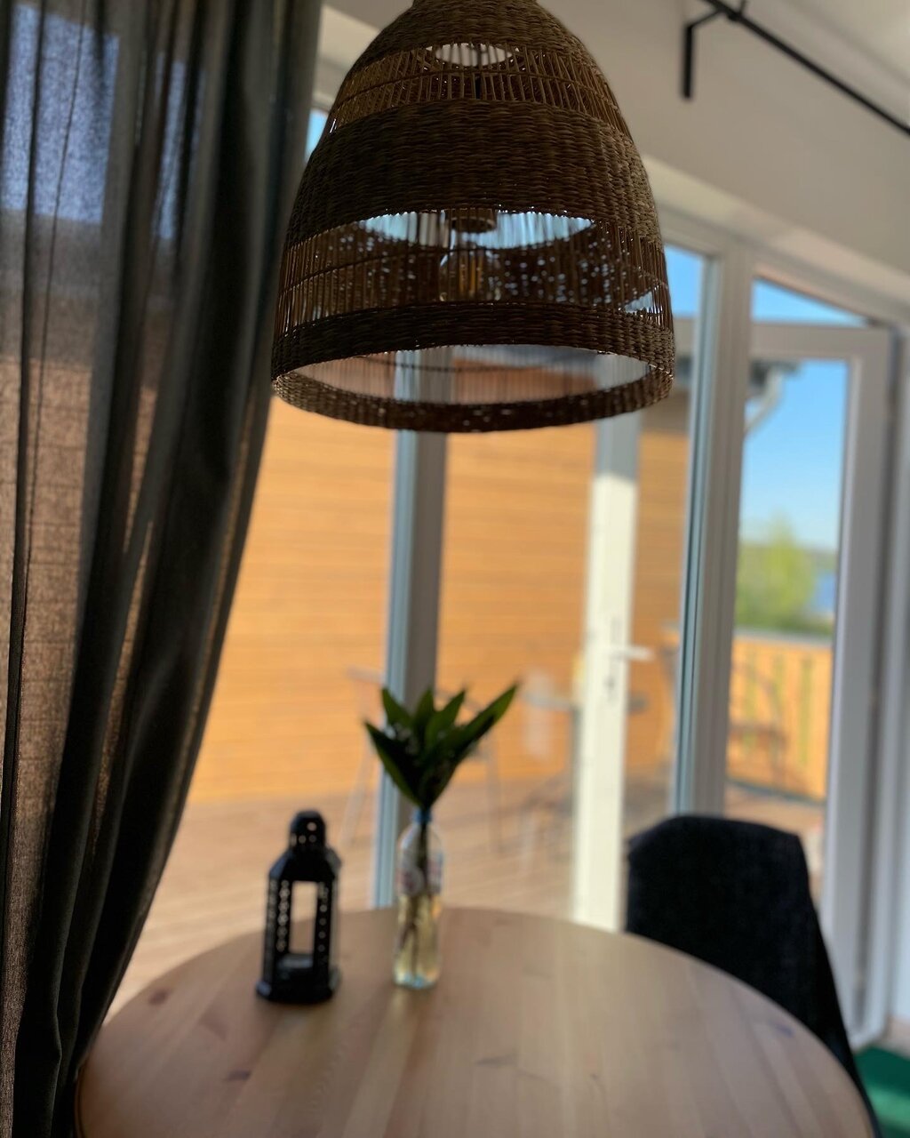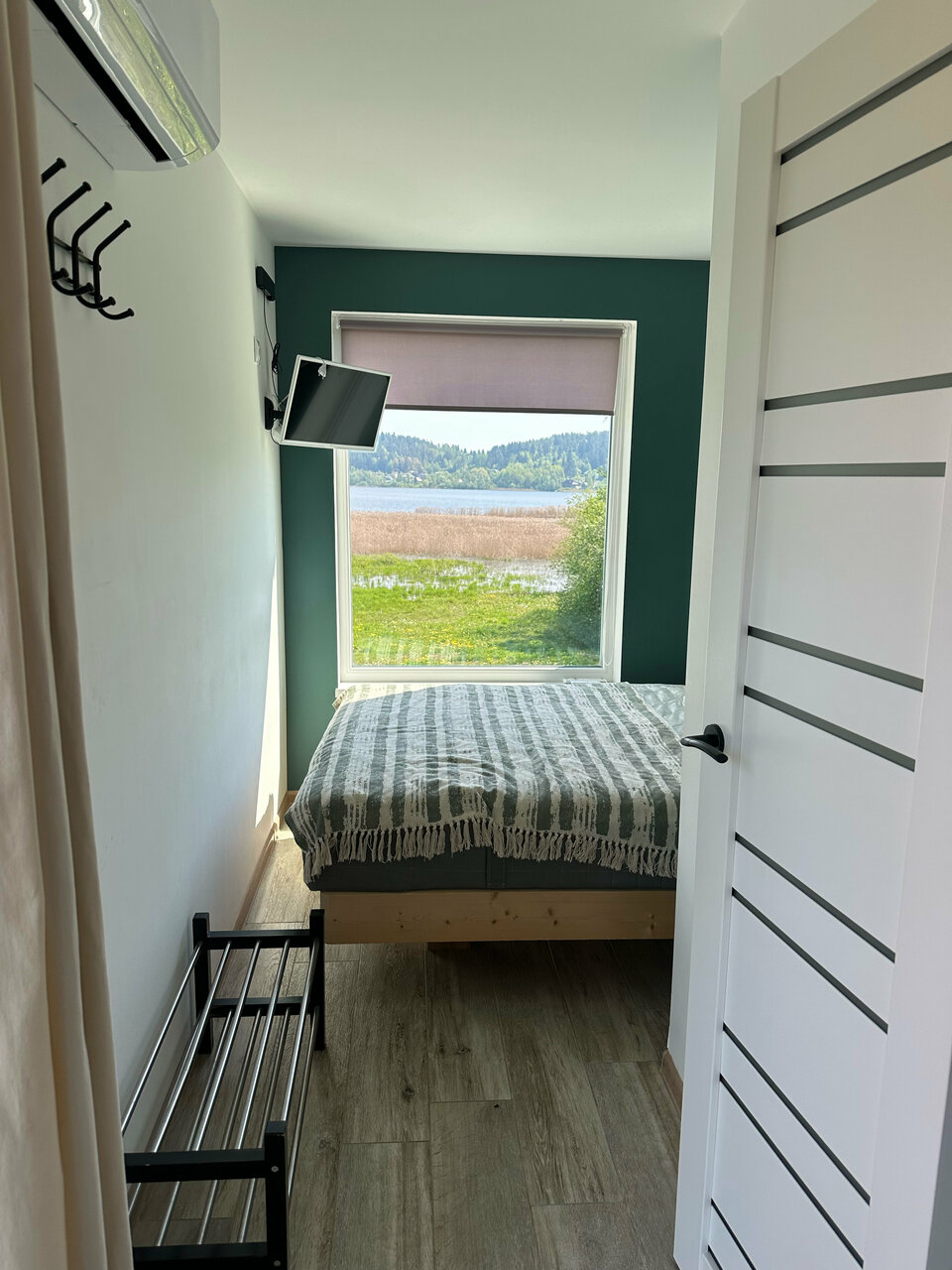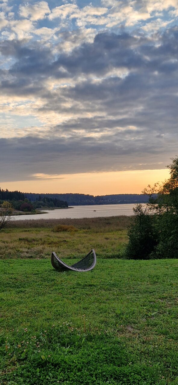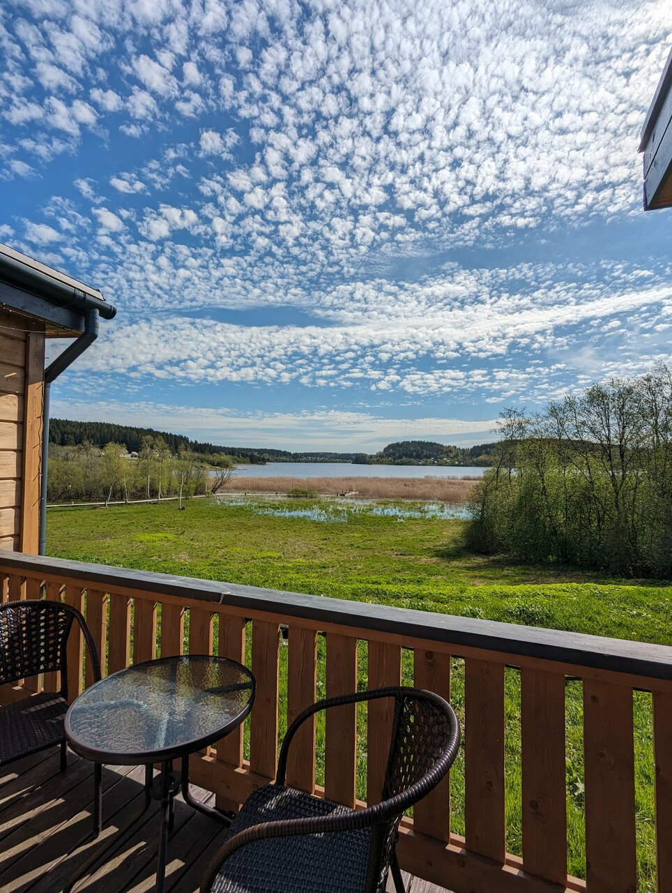 Великолепный вид , лёжа на кровати. Прекрасный интерьер от покинувшей нас икеи) из домика можно вообще не выходить) очень понравилось . И снаружи простор и речка
