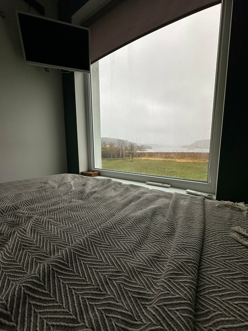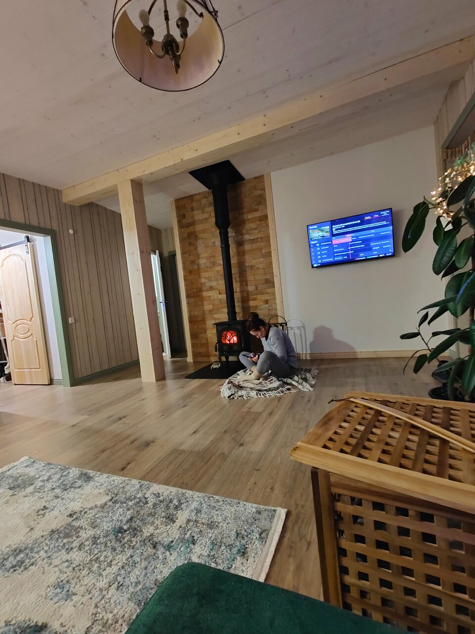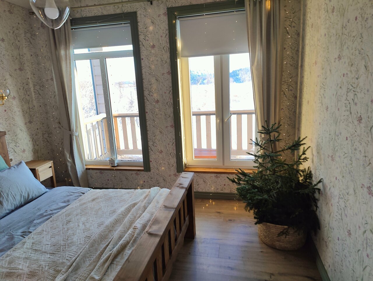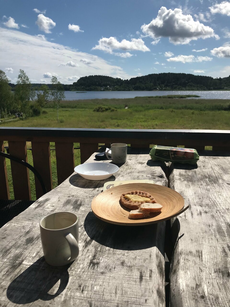 Великолепный вид , лёжа на кровати. Прекрасный интерьер от покинувшей нас икеи) из домика можно вообще не выходить) очень понравилось . И снаружи простор и речка