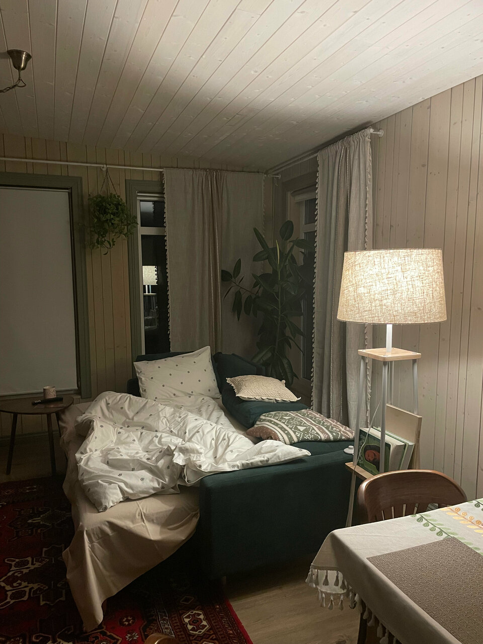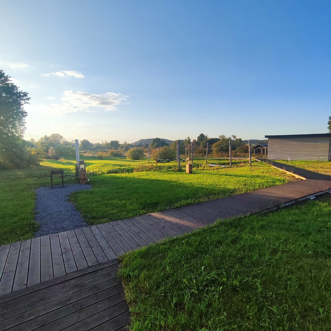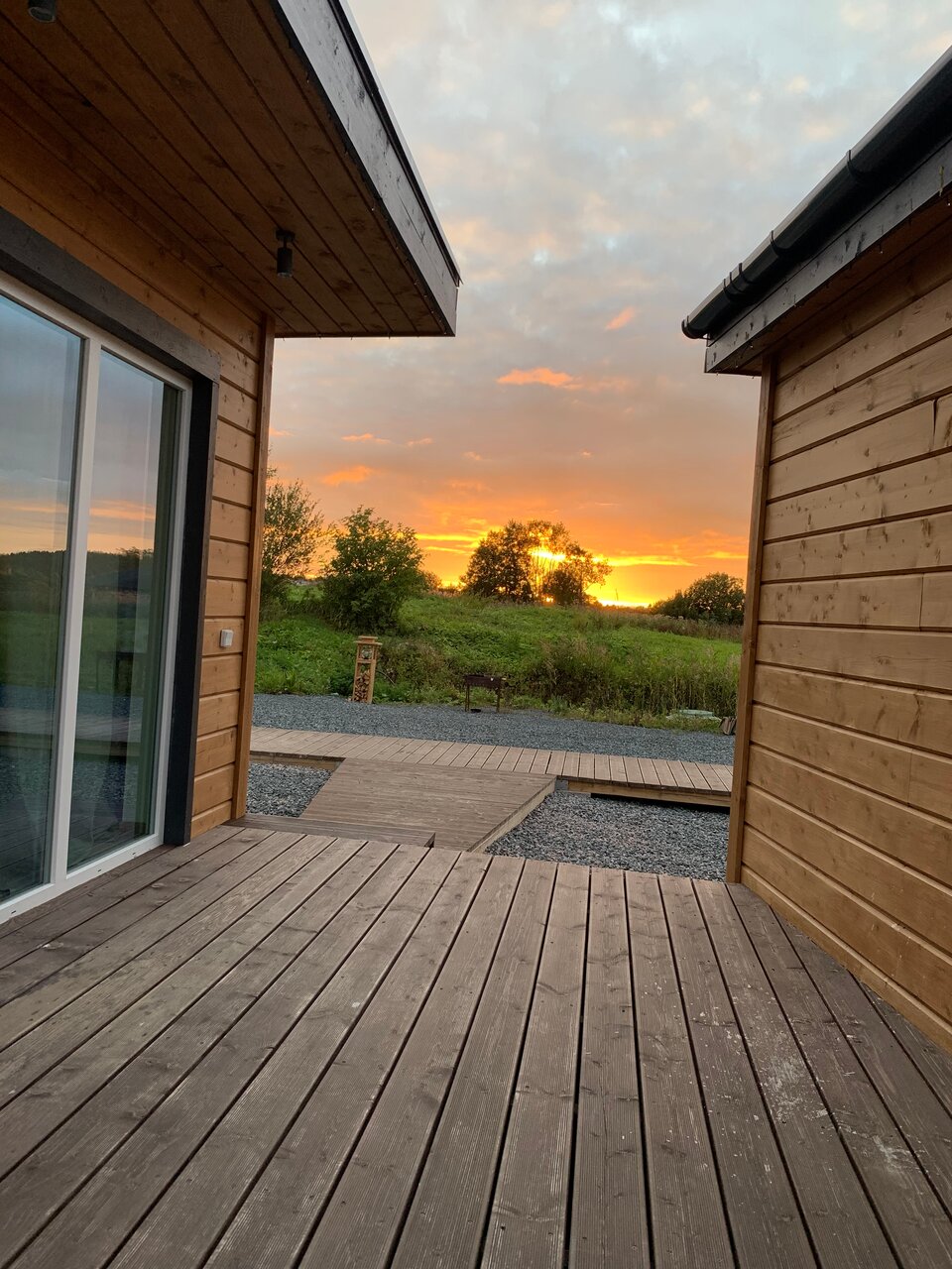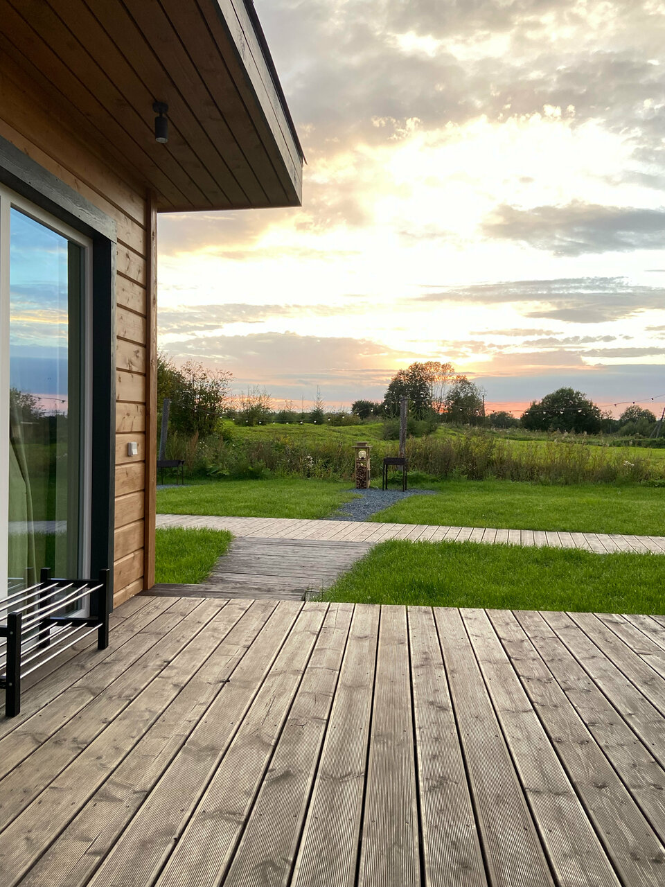 Великолепный вид , лёжа на кровати. Прекрасный интерьер от покинувшей нас икеи) из домика можно вообще не выходить) очень понравилось . И снаружи простор и речка