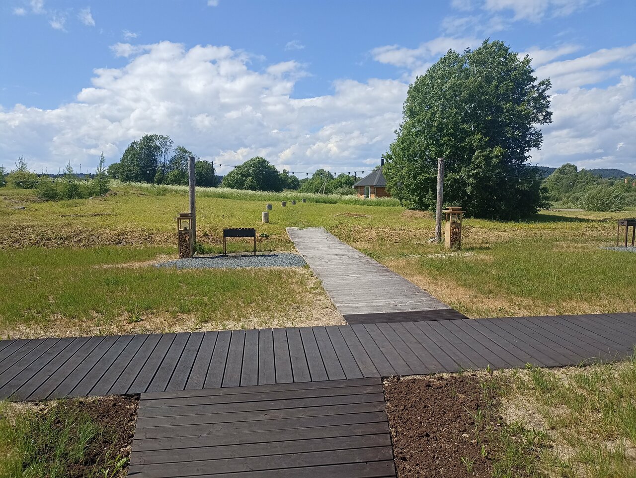 - Мангальная зона с бесплатными дровами и решетками.