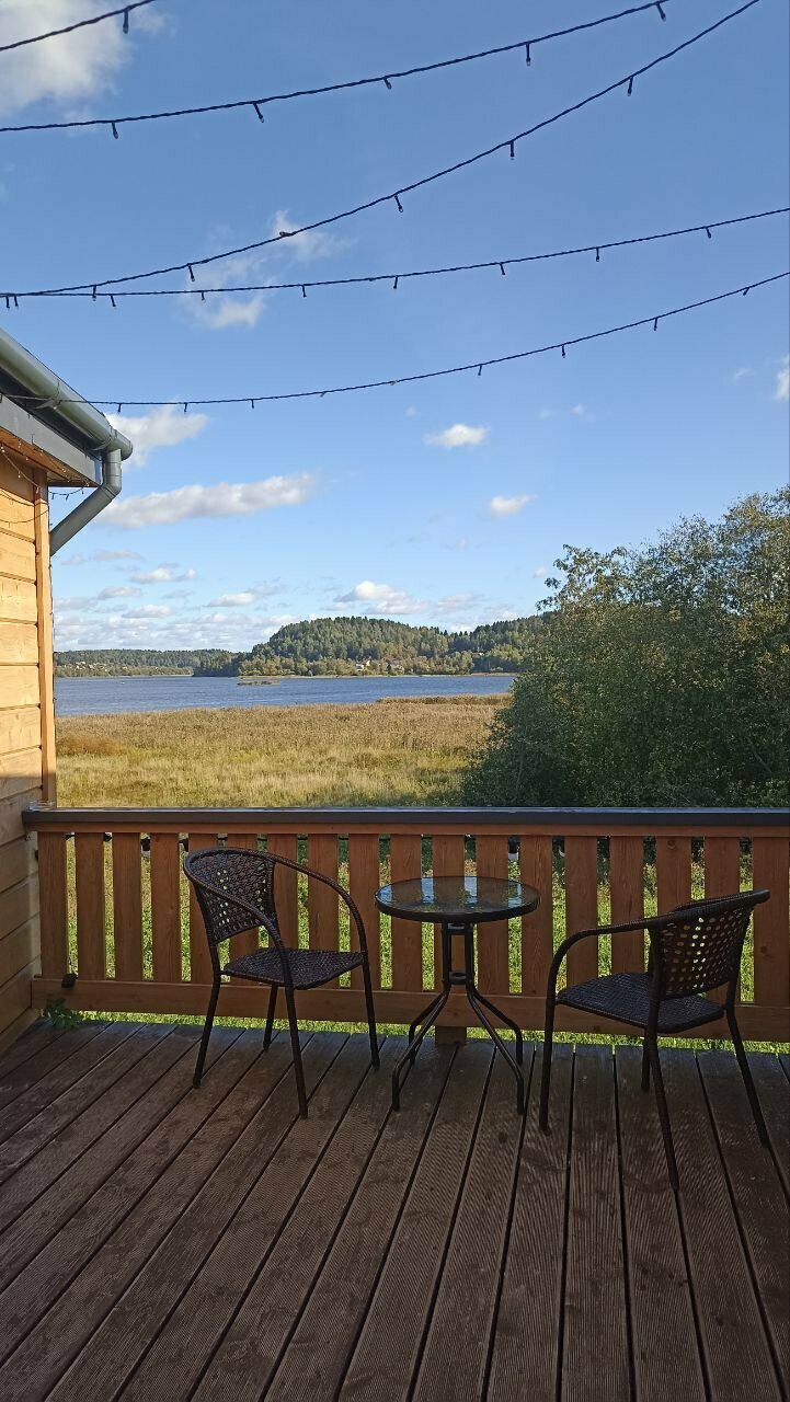 Прекрасное место, красивый вид из окна, озеро в нескольких минутах ходьбы. Можно порыбачить, искупаться. В домике уютно, есть все удобства, мангальная зона.