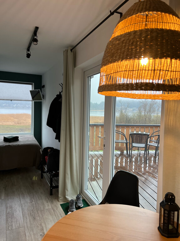Нам очень понравилось проживание здесь, заботливые хозяева и очень уютно! Шикарные виды вокруг, большое окно с видом на озеро, вечером красивая подсветка