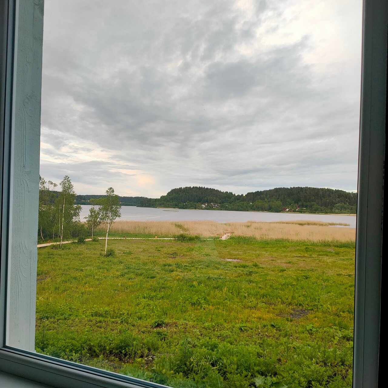 - Красивый вид из окна (озеро, залив).
