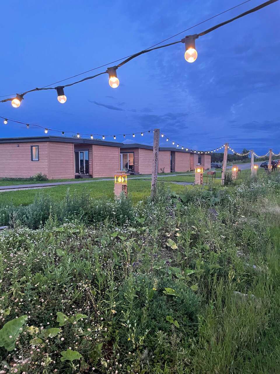Отличное место вдали от жилых домов, тихо, природа, супер уютно. Сами домики оборудованы всем необходимым. На кухне: чайник, микроволновка, посуда на 2 персоны (красивая и новая), электрическая плитка спрятана (есть кострюлька и сковорода). Ножи, доска разделочная, салатник, полотенчики, приборы, — все выглядит как новое. Полотенец достаточно, даже для ног есть, фен. Все в доме подобрано со вкусом, что очень вдохновляет и радует. Прямо кайф. К воде ведут три отдельные (вечером подсвечиваются) дорожки (деревянные настилы), по бокам высокая трава… Супер романтично и полное уединение. Мангал с дровами, новые решётки и шампур в открытом доступе. Доплачивать не надо, как везде. Ещё на территории стррится крытая беседка-грильная. Там тоже все продумано и по красоте. Мы с мужем очень довольны, что остановились именно там! Из пожеланий: можно организовать на территории баньку — бочку. Летом из неё сразу в воду
