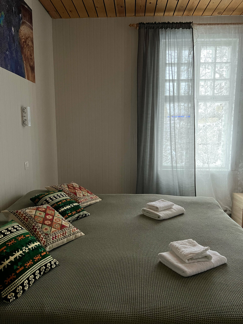 Были в конце октября 2022. Брали 2 ночи. 100 % рекомендую. Для путешественников это будет ещё одна локация в которой можно окунуться в частичку культуры Карелии. В доме есть все удобства, необходимые для жизни. Есть большая комната для семьи из 5 человек. Гостиная и столовая по своему оформлению не оставят никого равнодушным. Хочется ещё раз вернуться.