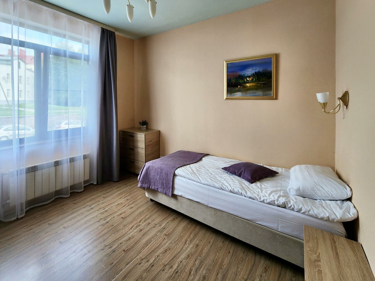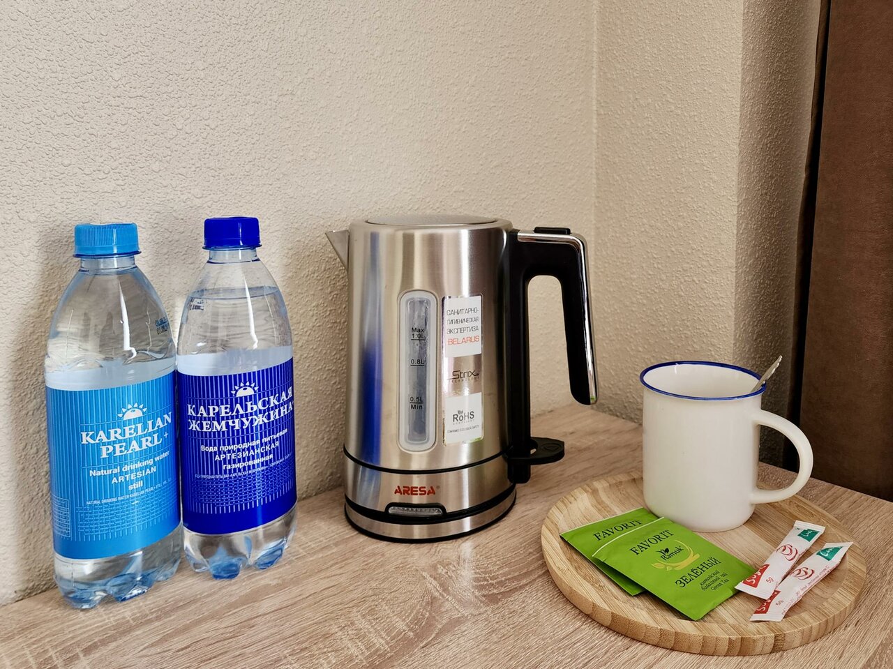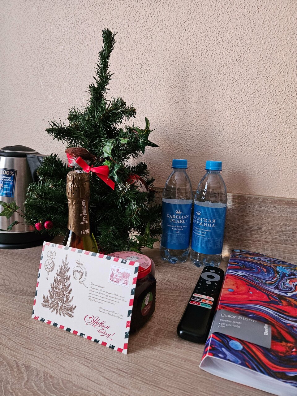 Очень хорошая гостиница в центре Сортавалы. Совершенно не ожидала, что будет такой комфорт. Очень чисто, свежий ремонт. В номере есть помимо двух кроватей, которые можно соединить, еще и уютный диванчик. В санузле большая чистая душевая кабина, есть принадлежности для душа. На столе чайник, чай, сахар, две бутылки воды. Холодильник, большой телевизор, обогреватель. В общем, есть все что нужно для комфортного отдыха. Вид на озеро шикарный.