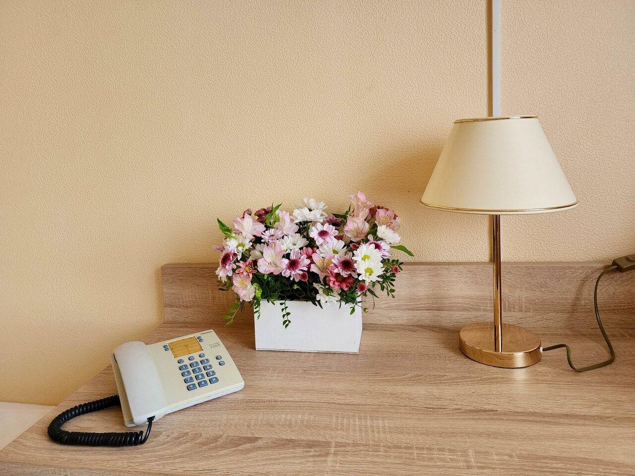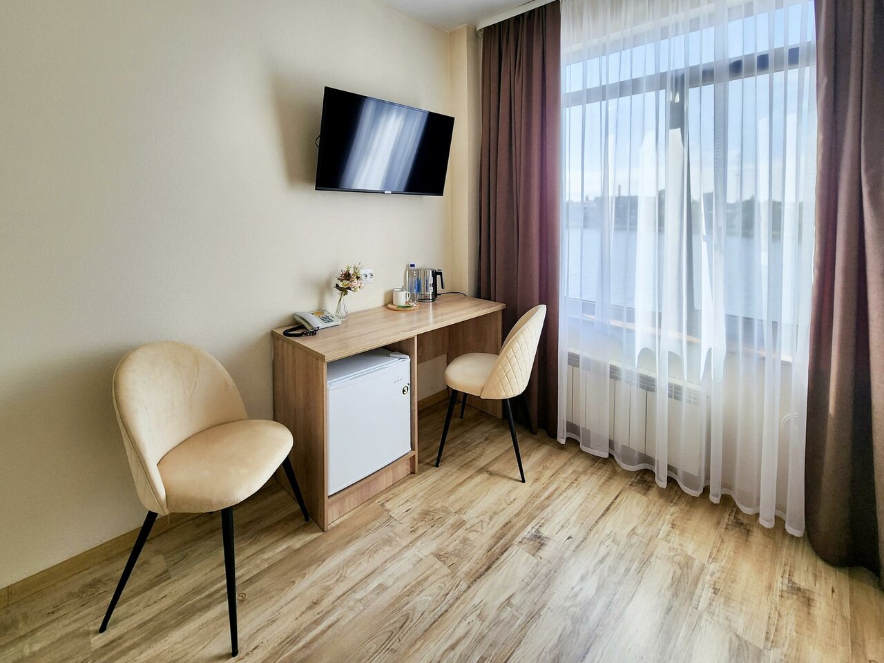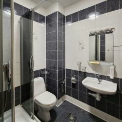 Спальня: две односпальные кровати или двуспальная кровать, письменный стол, шкаф, Smart TV, телефон с междугородней связью, Wi-fi.Удобства: душ, туалет, фен, 2 полотенца на человека.