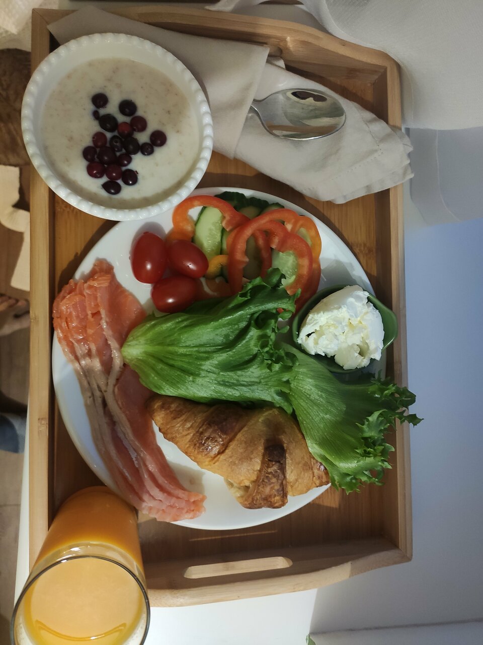 - Вкусные и свежие завтраки (особенно икра, лосось, круассаны).