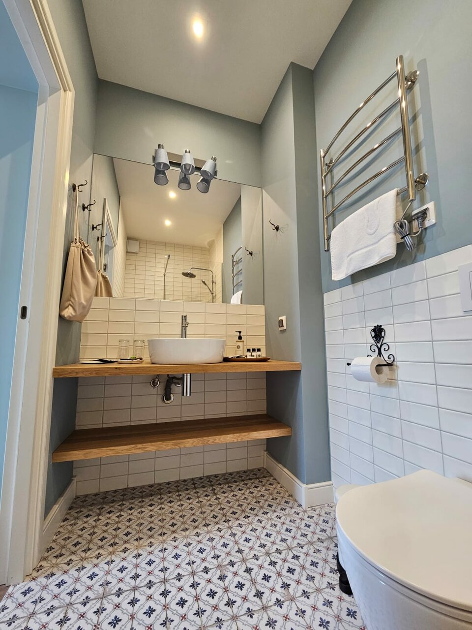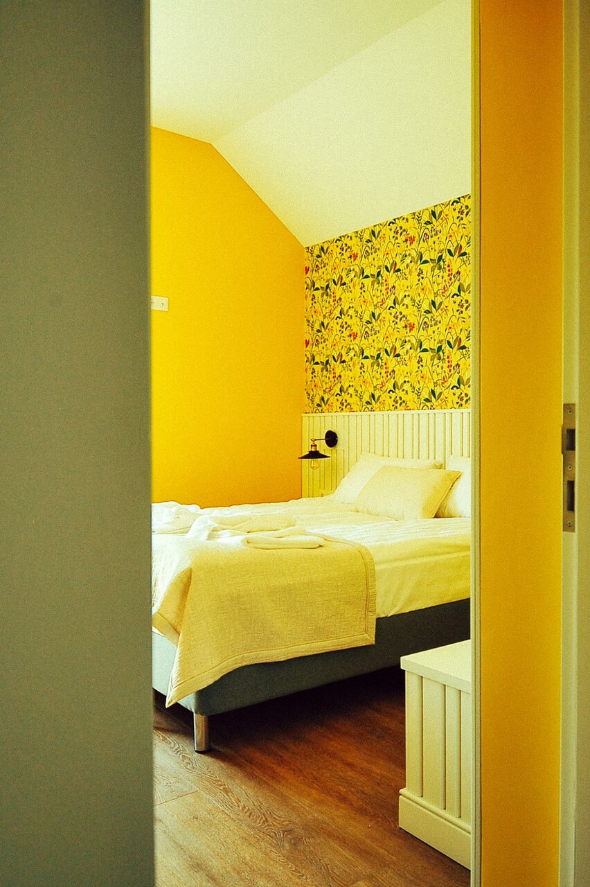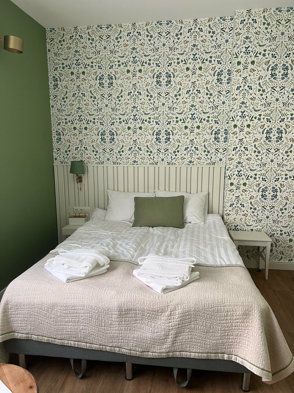 Гостиница-келья с красивыми обоями и отличным расположением. Из плюсов- свежий чистый ремонт, приятный дизайн, хороший матрас. На этом все. Мы расположились в 2 номерах, шкафов нет. Есть легкая конструкция с 2 вешалками или полочки — если у вас один мини чемодан, то вам сюда. Мы, как путешественники, были с несколькими чемоданами, они лежали повсюду в номере на полу. Завтрак в номере- подносы не помещаются на мини столике, если вы романтик пара, то завтрак в постели хорошая идея. Если как мы с ребенком — будете есть за подоконником, он широкий. Грязную посуду складывать некуда, я разложила все на свои вещи. Капсулы для кофемашины неоригинальные, поэтому кофемашина заедает. Чашки по размеру в нее не входят. Это бутик-отель? Нет, конечно! Общей зоны нет, то есть вы покупаете за эту стоимость только номер, небольшой. Территории нет совсем, гостиница стоит на асфальте на общей парковке с другими зданиями. Считаю, что своих денег это совсем не стоит. Никакой продуманности здесь нет.