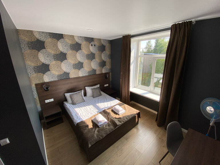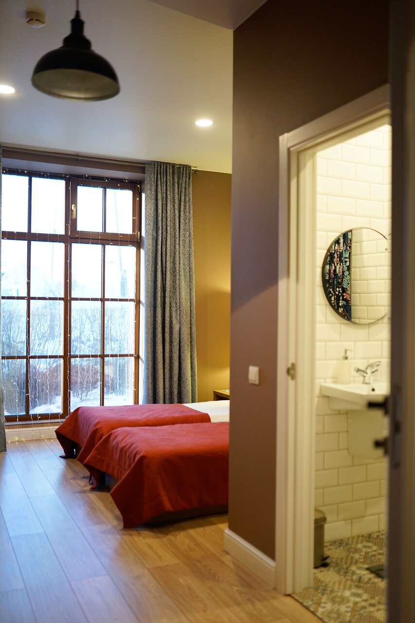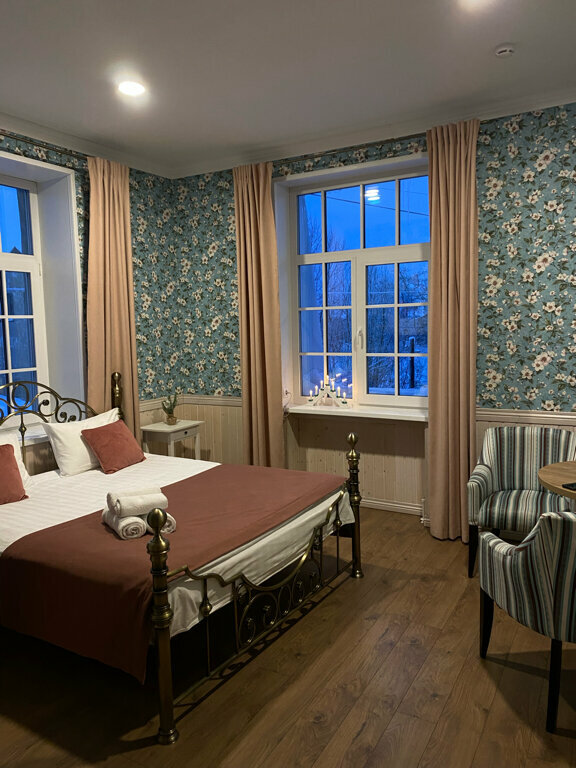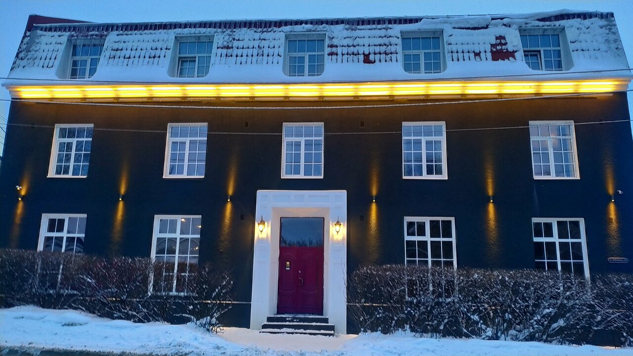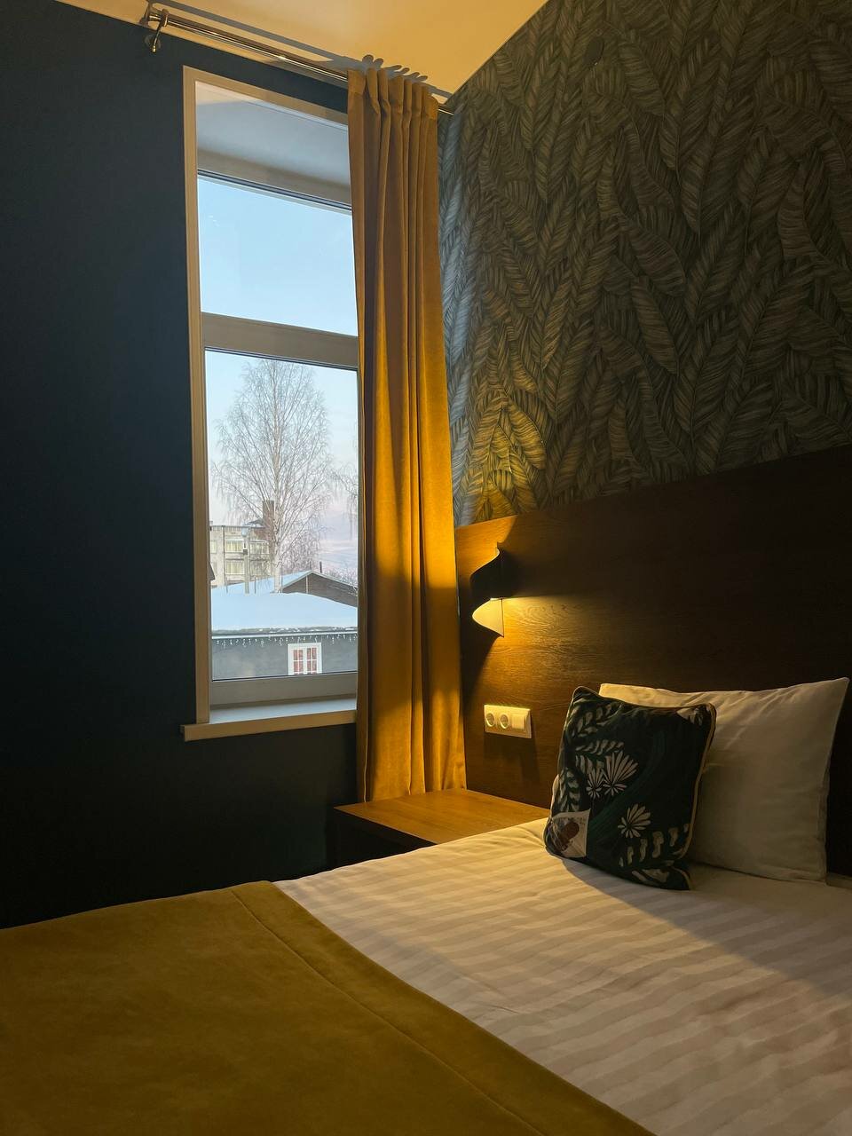 Фасад отеля пугает, но внутри свежий ремонт и он довольно уютный. Персонал отзывчивый и приветливый. Номера чистые. В номере есть чайник и пакетики чая. Завтрак приносят в номер. Нам давали сырники и блинчики с мясом. Еда была свежая и хорошего качества. Но не хватает мини кофейни, чтоб можно было попить свеже сваренный кофе и съесть пирожнику не выходя из отеля. Хоть город и маленький до ближайшей кофейни все равно пришлось идти минут 20. Так как в зимний период дороги там вообще не чистят, то это сложно назвать приятной прогулкой.