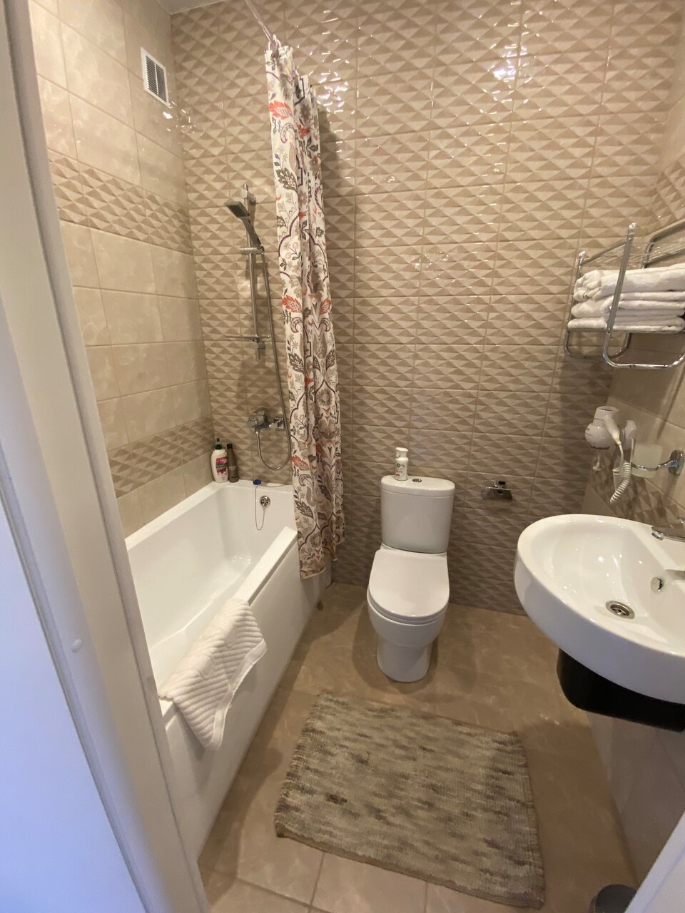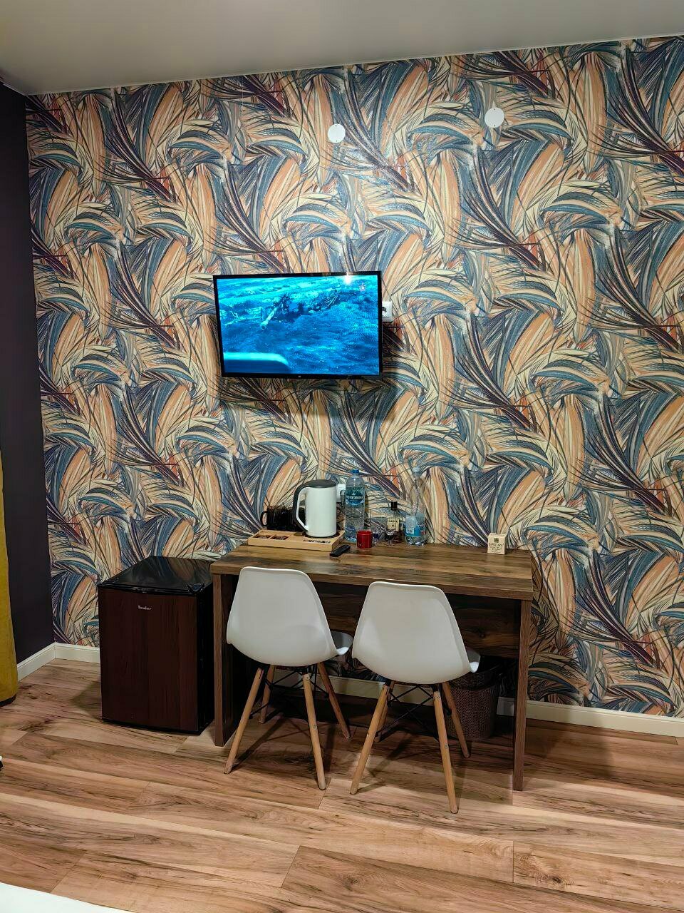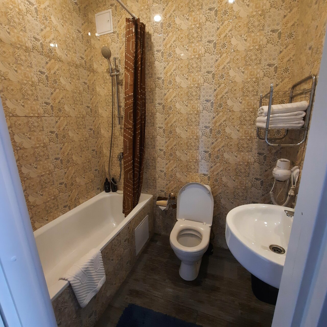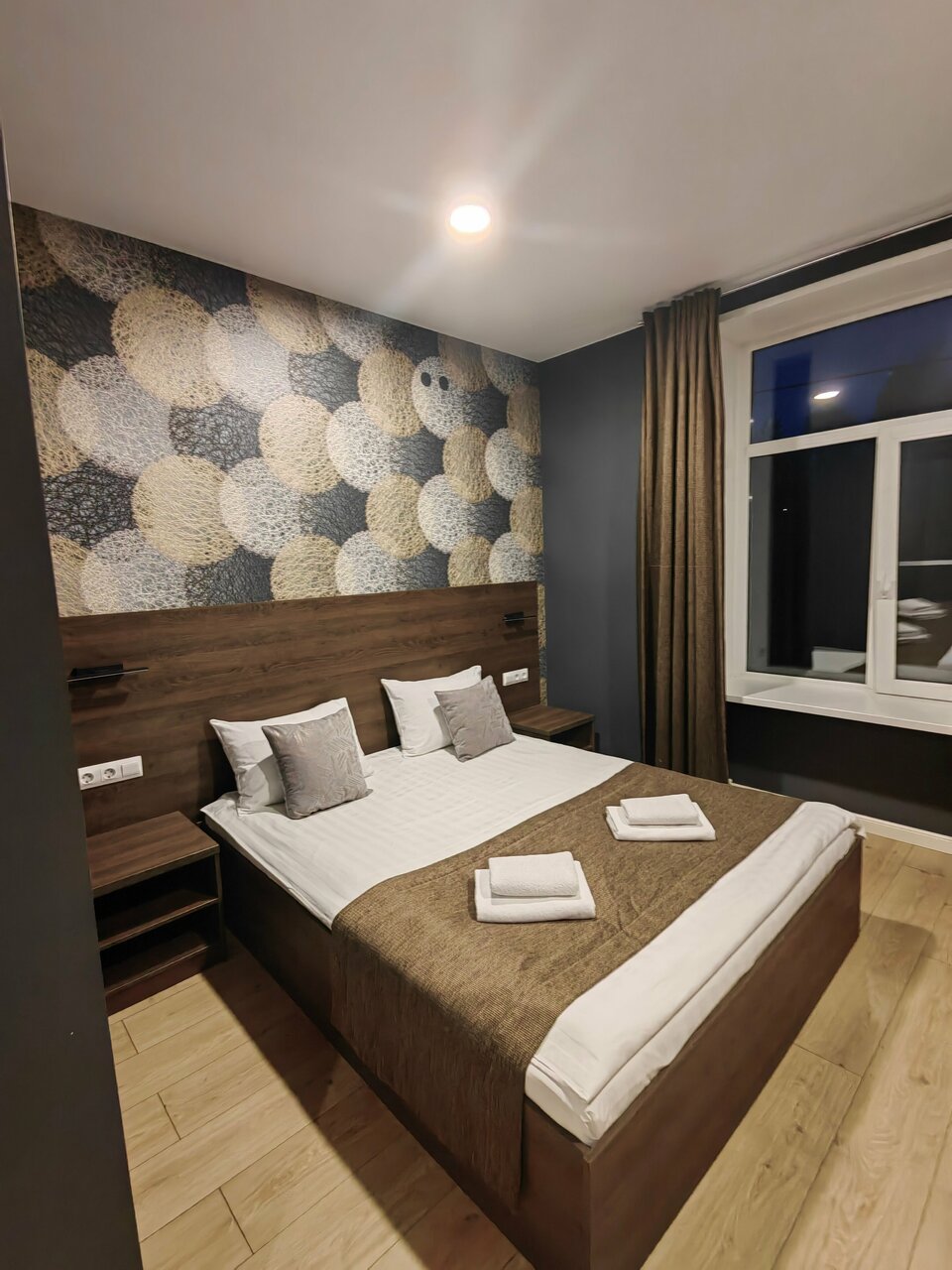 Приятный чистый номер с новым ремонтом. Порадовали тёплые полы и красивый интерьер. Постельное белье было чистым, душ работал исправно. В номере был фен, бутылка воды и все для приготовления чая