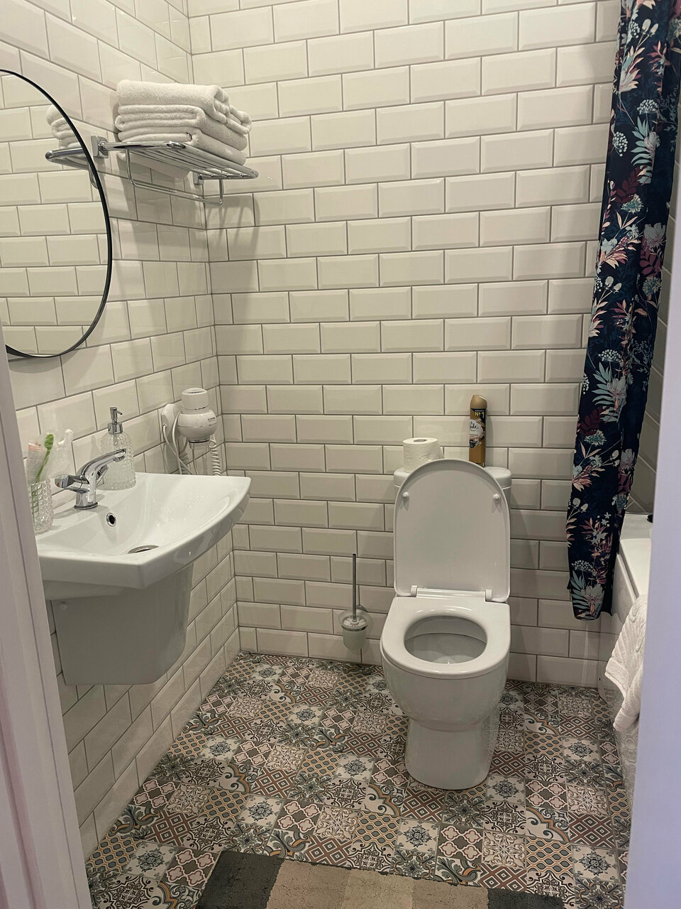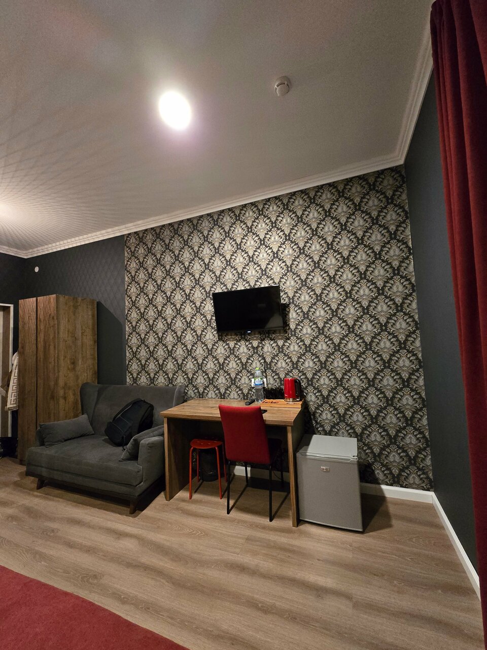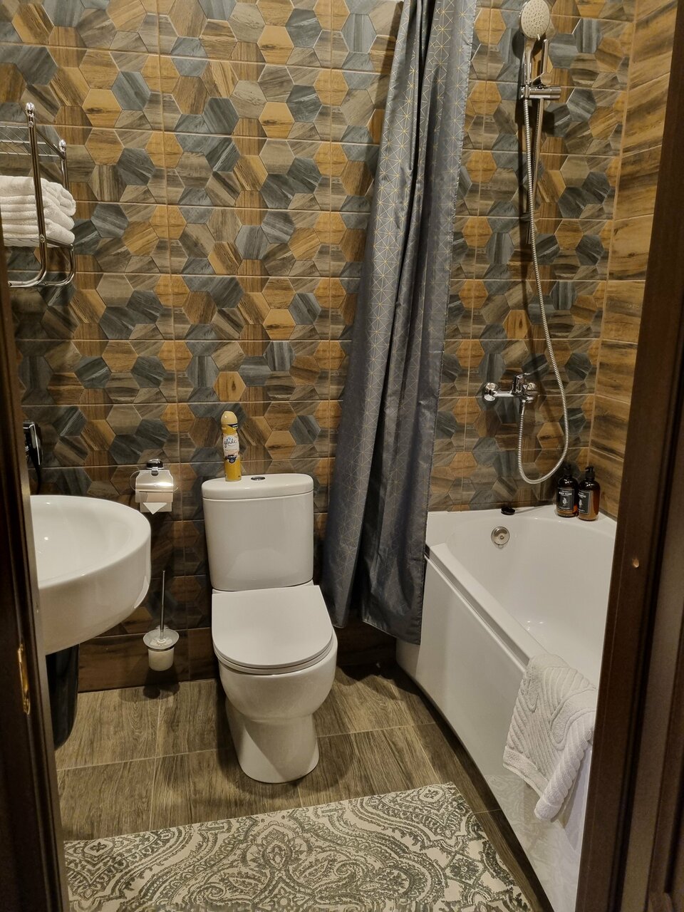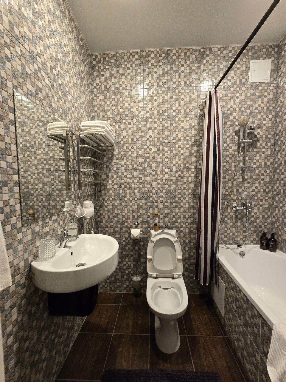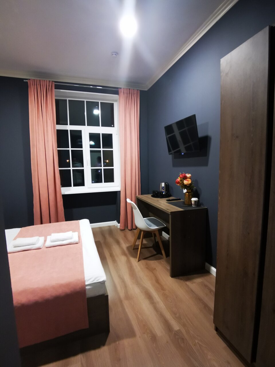 Приятный чистый номер с новым ремонтом. Порадовали тёплые полы и красивый интерьер. Постельное белье было чистым, душ работал исправно. В номере был фен, бутылка воды и все для приготовления чая