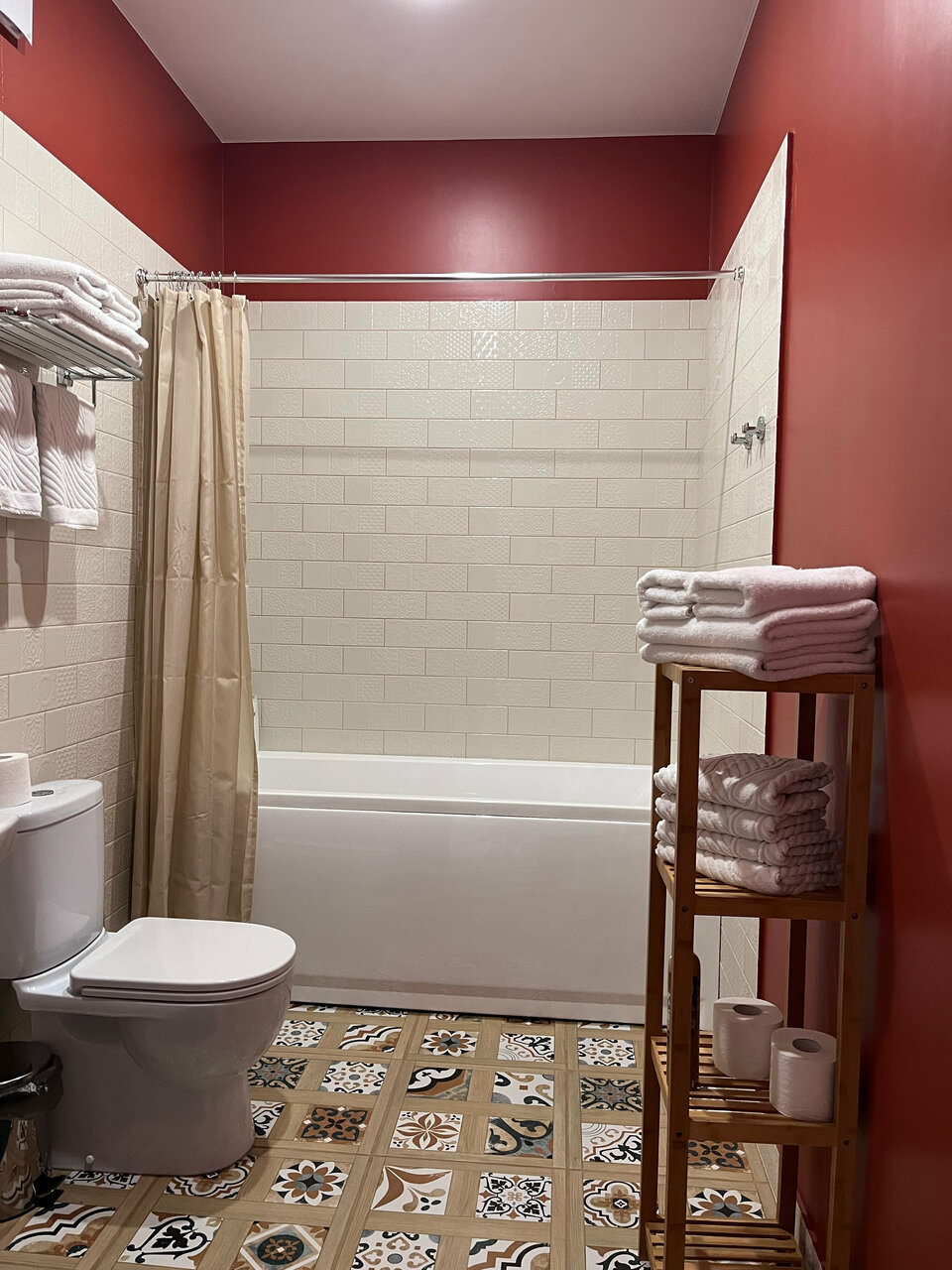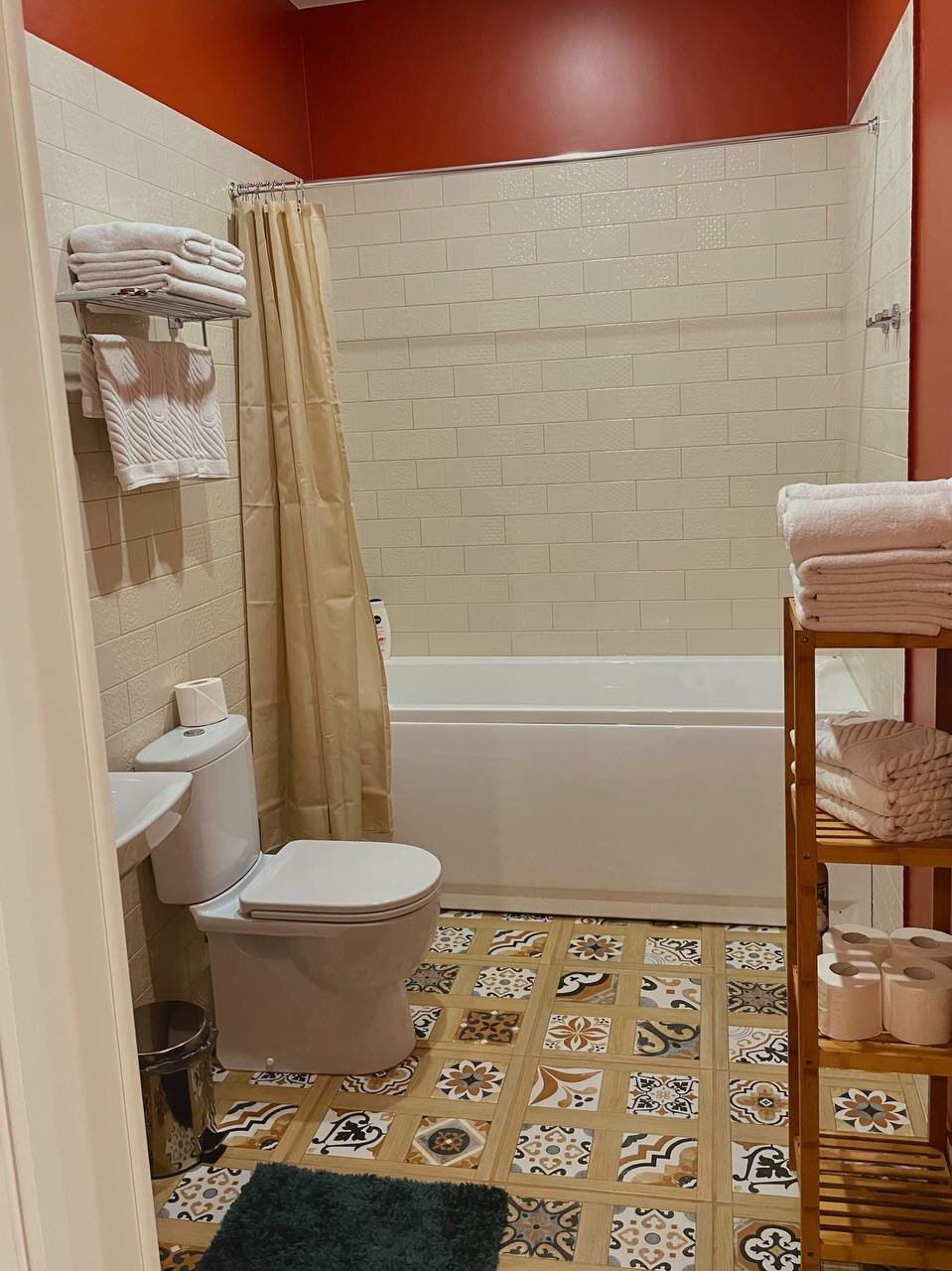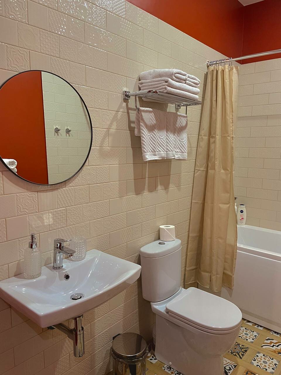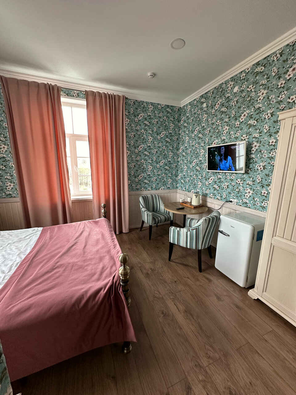 Приятный чистый номер с новым ремонтом. Порадовали тёплые полы и красивый интерьер. Постельное белье было чистым, душ работал исправно. В номере был фен, бутылка воды и все для приготовления чая