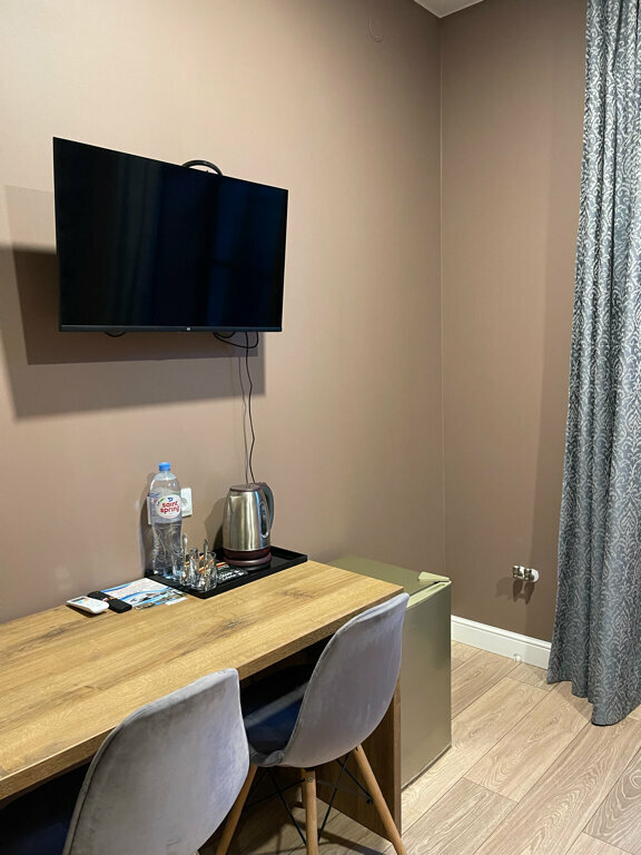 Хорошая гостиница. Номер чистый. Техника и мебель обновлённое. На завтраке очень вкусные сырники были. В номере бесплатно была бутылка воды и несколько пакетиков чая.