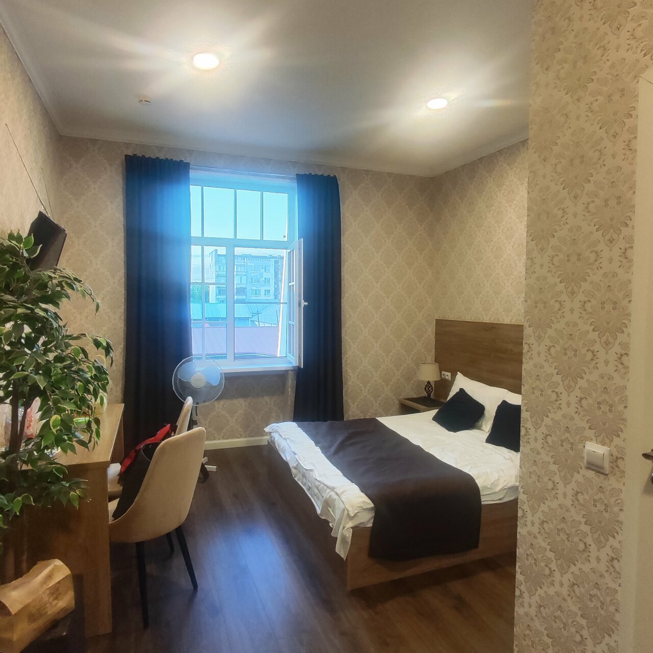 Хороший отель. Снаружи неочень, но внутри все очень красиво и чисто. Персонал дружелюбный. Своя парковка за воротами. Хотелось бы ограничитель на окна, так как нет режима микропроветривания. В номерах есть все необходимое.