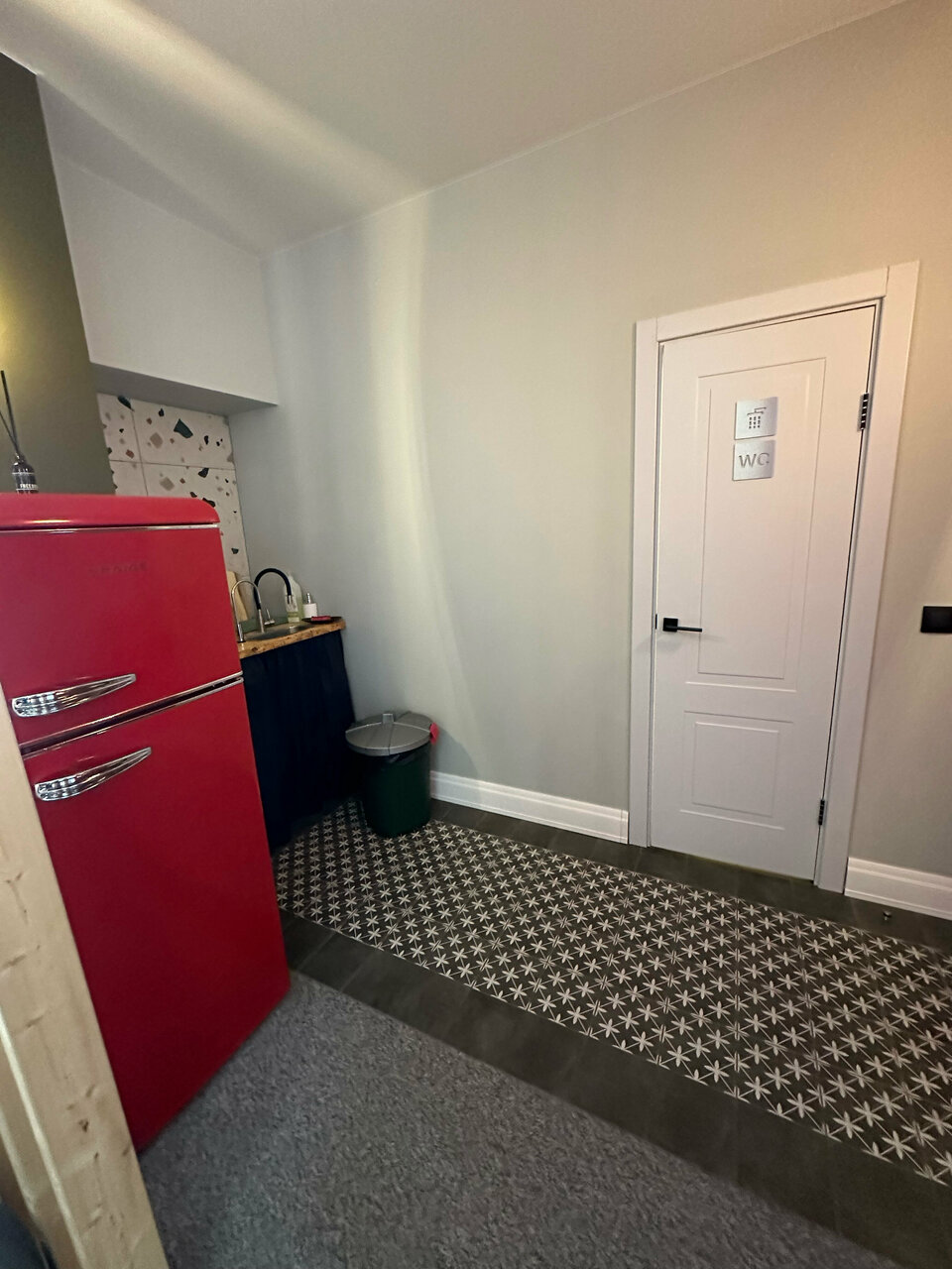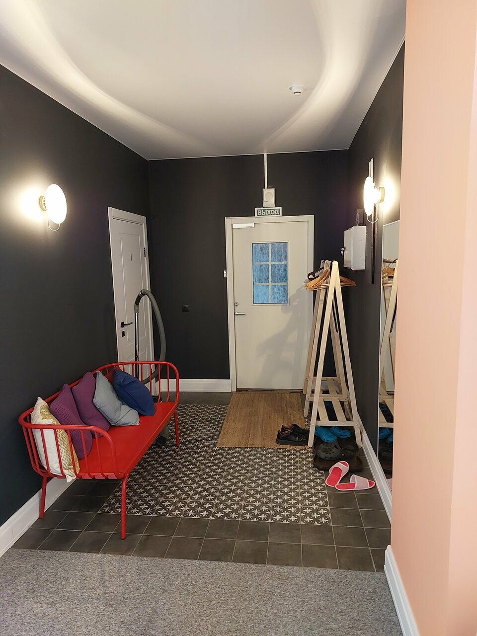 Чистейшее место! Современный дизайн! Халаты, тапочки, полотенца, матрасы, разные подушки, красивая посуда, классные средства для душа! Всё как дома! И даже лучше! Есть 2 нюанса — старый подъезд (скоро говорят капремонт) и отсутствие шумоизоляции в номерах (с общей кухни до позднего вечера и с раннего утра слышно каждое движение вилки и все разговоры). Огромный плюс — на первом этаже прекрасная пекарня с завтраками, а за углом КБ))))))