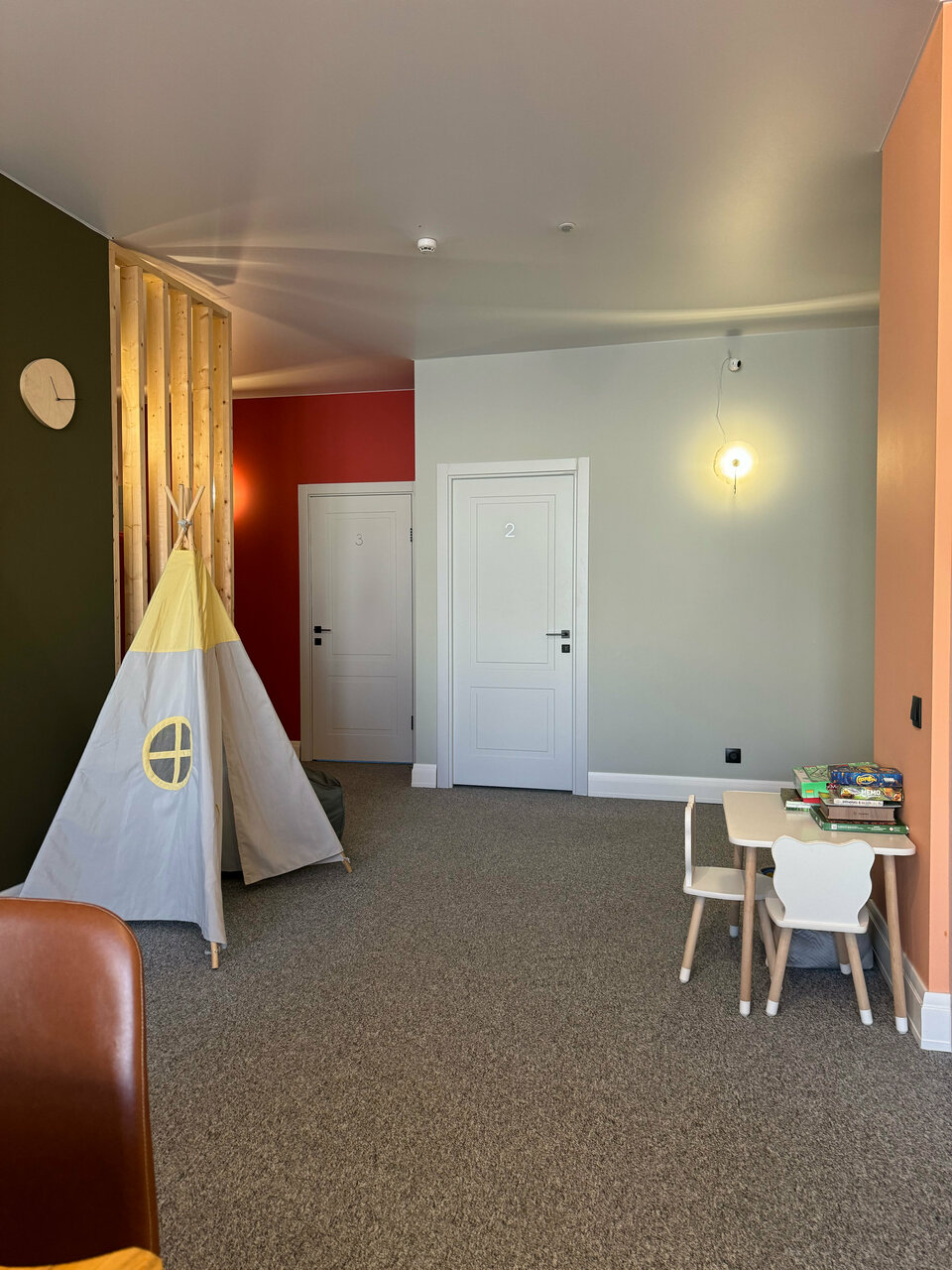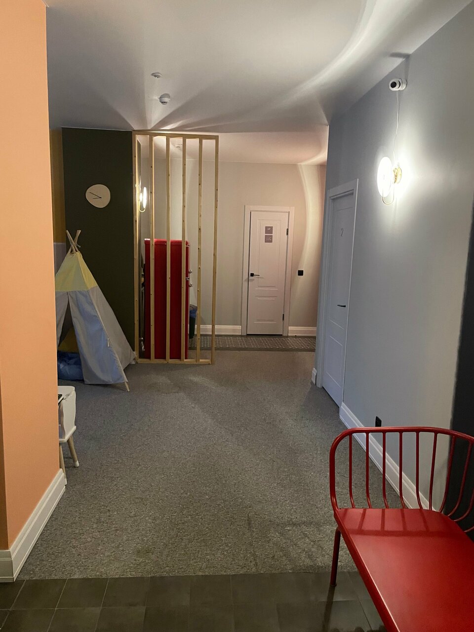 Очень крутой мини-отель. Очень чисто и тихо. Интерьеры приятные и продуманные. Санузел общий, но это никак не минус, так как постояльцев мало и никакой очереди нет. Есть место для принятия пищи с чайником, кофемашиной, тостером и микроволновкой — очень удобно. Есть игрушки для деток, игры и коллекция журналов Марвел) В номере вас ждут приятные халатики и полотенца, по три как положено на каждого, включая ребенка. В общем очень рекомендую!