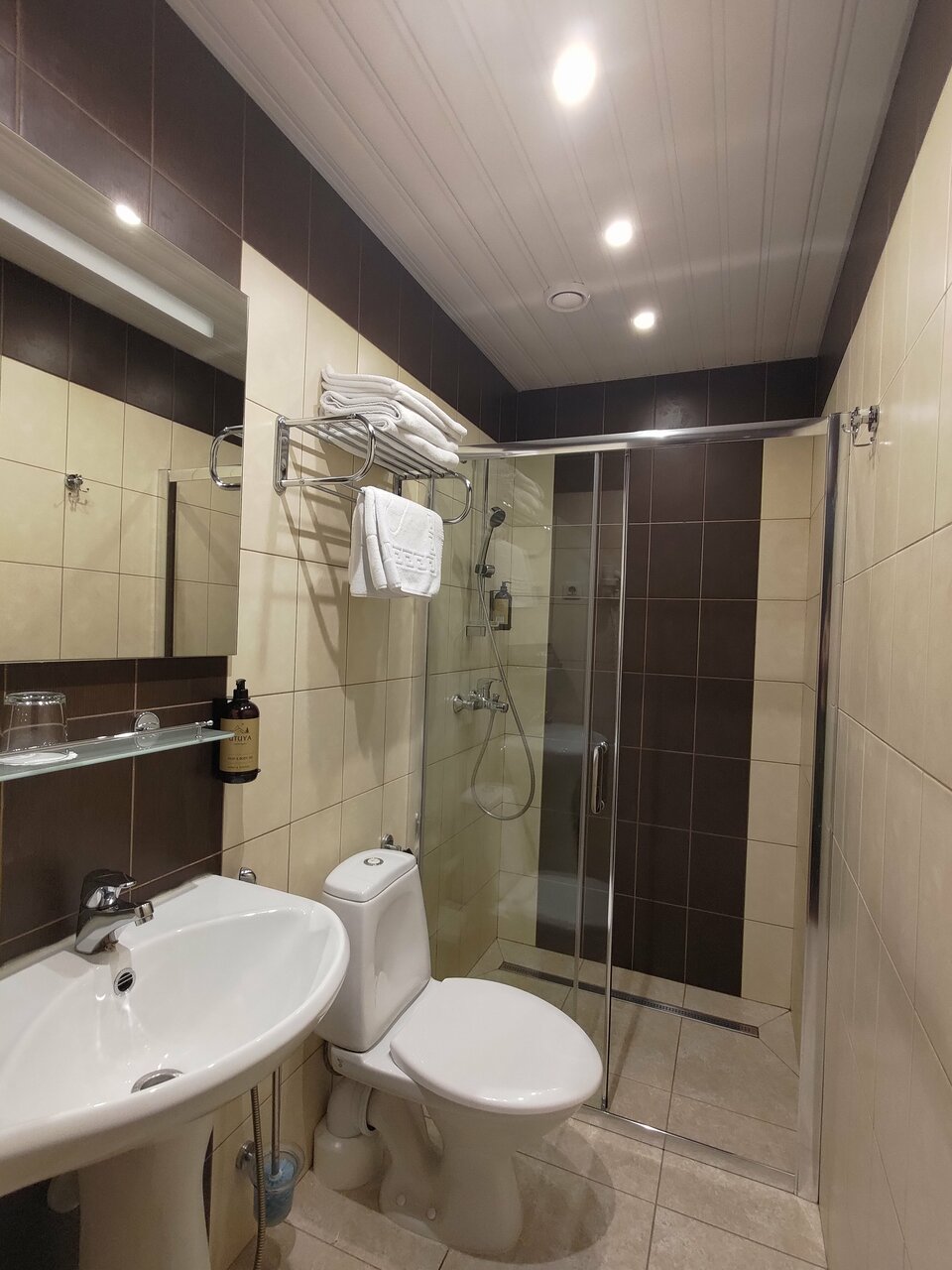 - Полный набор удобств (фен, халаты, тапочки, чайник, чай/кофе, туалетные принадлежности).