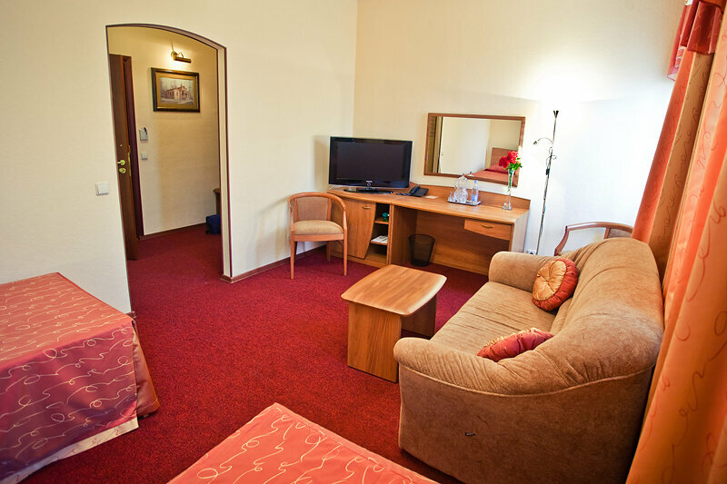 Площадь номера: 24 м²Просторный номер повышенной комфортности с рабочим местом и зоной отдыха, совмещенной уборной комнатой (душевая кабинка или ванна).Выбор кроватей: 2 полутораспальные кровати и 1 диван-кровать или 1 большая двуспальная кроват...