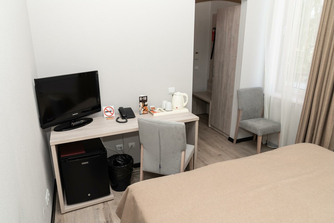 Площадь номера: 13 м²Двухместный номер с рабочей зоной и совмещенной уборной комнатой.Кабельное телевидение (более 60 каналов) и сеть Wi-Fi.Номер для комфортного проживания двух человек.