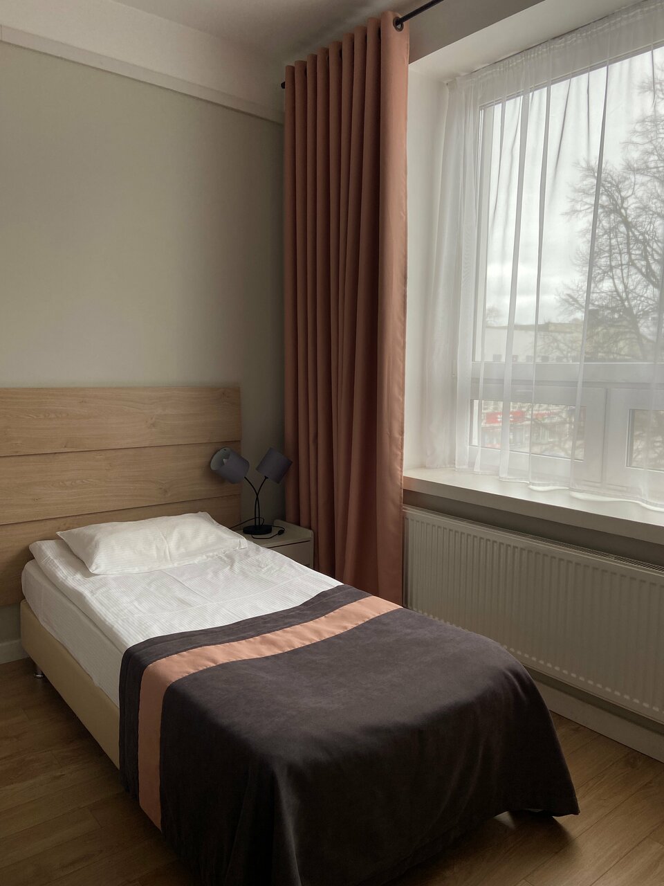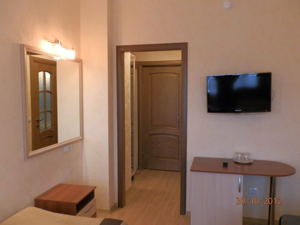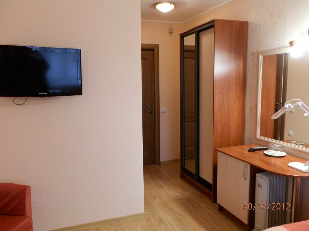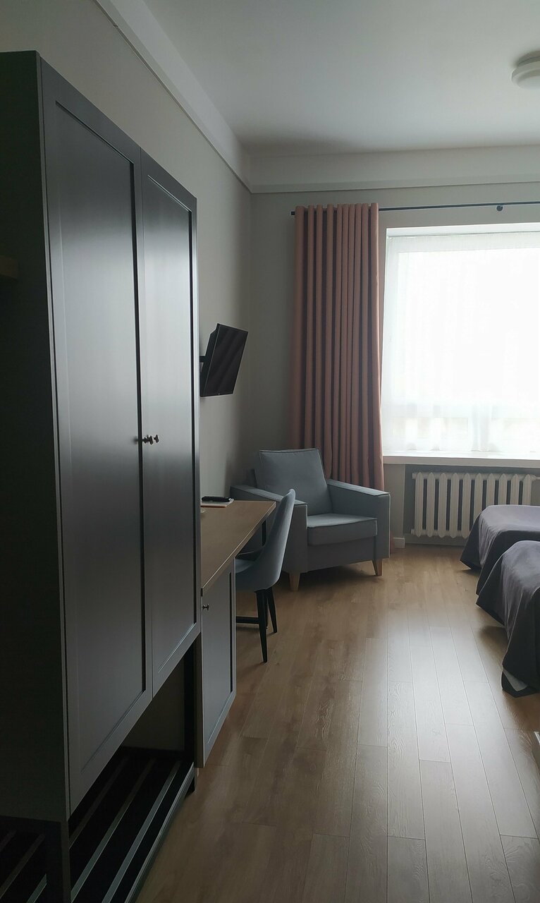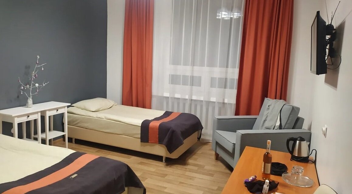 Советская в прошлом гостиница с весьма ‘ушатанными’ номерами и неочевидной геометрией. На цокольном этаже в номерах могут присутствовать неприятные запахи, потому необходимо быть внимательными при заселении. Загадки вечера — как появилось пятно сложной геометрии на потолке неподалеку от холодильника и для чего в номере с пластиковыми стенами понадобился деревянный потолок. 🙂