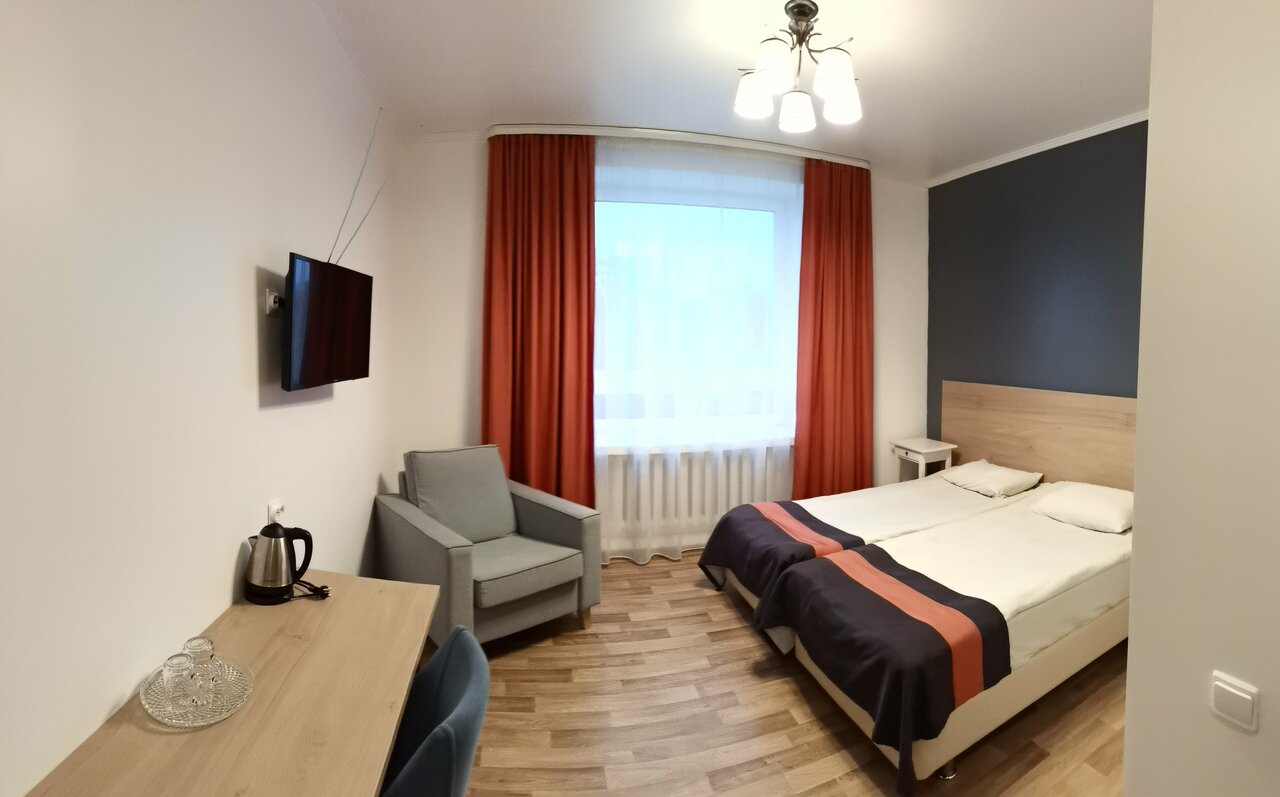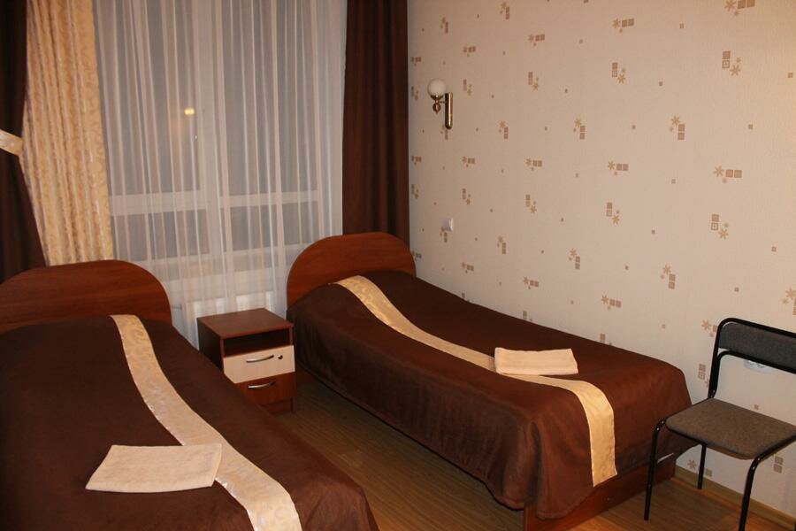 Номера оснащены санузлом, холодильником, телевизором, феном, утюгом и бесплатным Wi-Fi. В стоимость проживания (от 2900 ₽/ночь) питание не включено, но в гостинице есть кафе с питанием по меню.