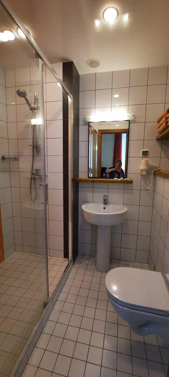 Гостиница расположена в самом центре. Несмотря на довольно-таки старое здание, сами номера очень хорошие. Из плюсов особенно запомнился теплый пол в ванной комнате. Чисто, уютно. Можно было бы добавить ложки и блюдца к имеющимся кружкам. Завтрак неплохой (яйцо, сыр, колбаса, овсянка), единственное не понравилась сама атмосфера. Мы были одни, молодой человек молча указал нам на наш стол и также молча всё принёс и ушёл. Про кофе и молоко пришлось выспрашивать.