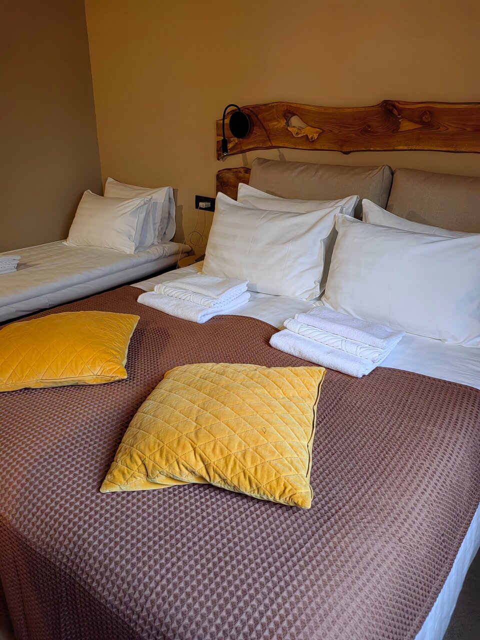 Место неплохое, но не прям гостиница. Есть общая зона-кухня со всем необходимым. Самый большой минус — очень сильная слышимость. Советую купить беруши, потому что слышно даже шепот соседей через стенку. Но в номере очень чисто, ванная комната хорошая. Есть халаты, шампунь, гель для душа, одноразовые тапочки. Персонала внутри нет — все через вотсап, но вечером приходит горничная. В целом место норм, но дороговато — за ночь вышло 6500 за двухместный номер в выходные