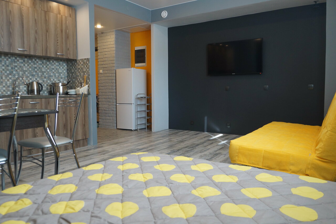 Удачное расположение, в апартаментах есть все что нужно, все чистое. Приятные хозяева Заехали в конце августа, было немного прохладно, так как этаж цокольный, но проблем это не доставило. Круто что есть парковка)