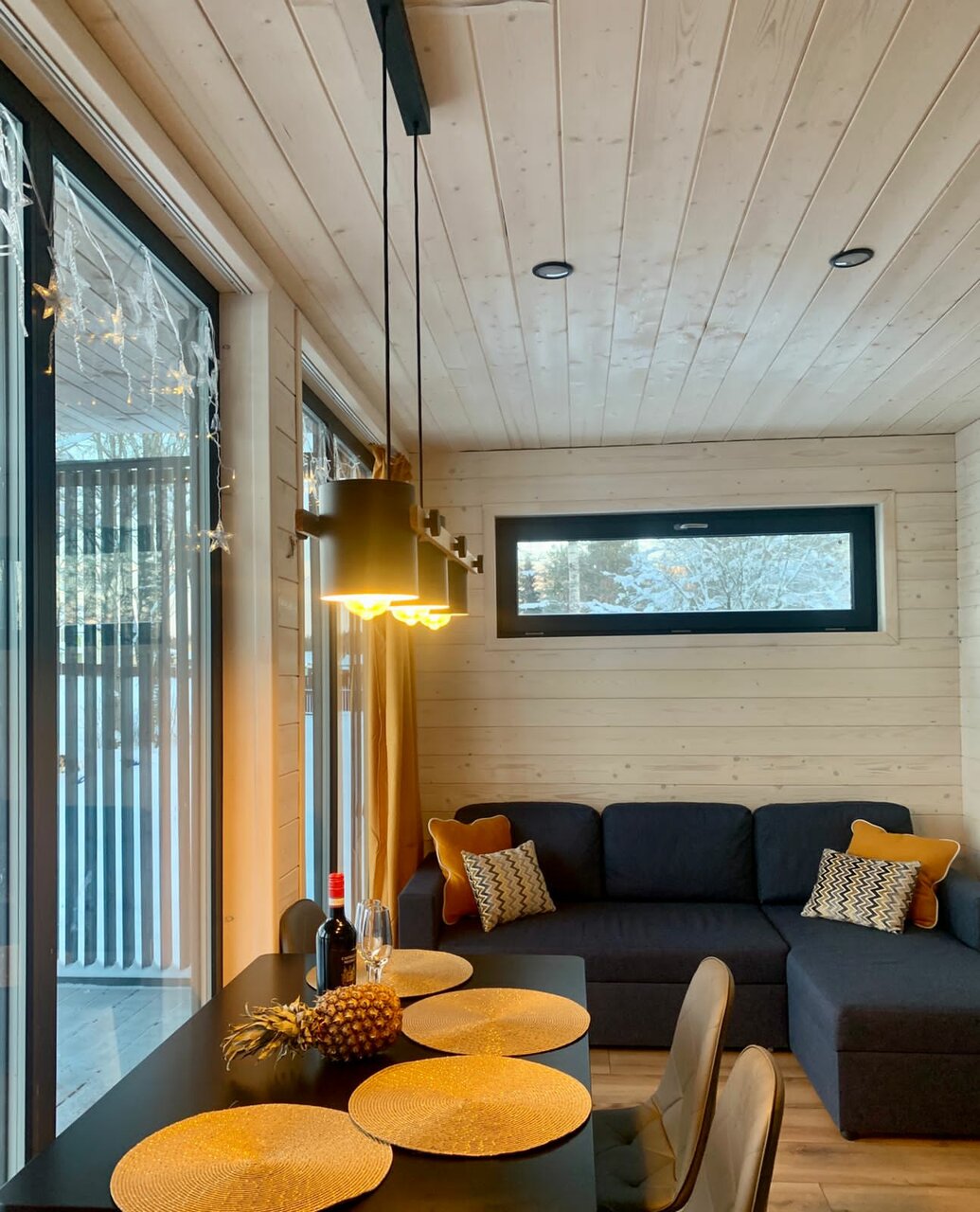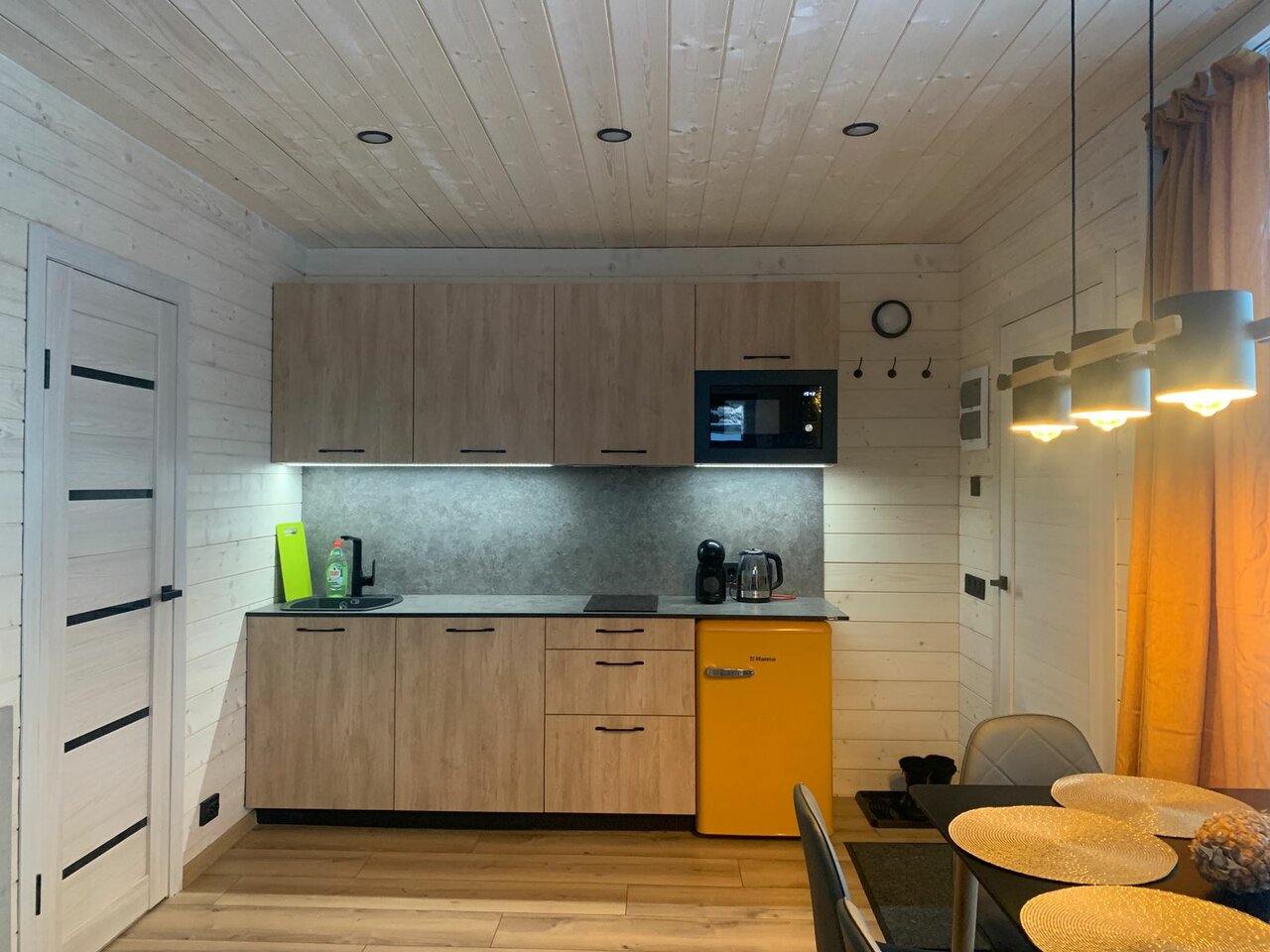 Мы остались довольны! Ездили вдвоём 1.02.2022 на сутки. Получился отличный отдых загородом. Уют и комфорт был на 100%. Удобное расположение, от центра города доехали за 1,5 часа. Территория закрытая, все чисто, дорожки убраны, на машине легко доехали. Домик теплый, большой плюс теплые полы, можно смело ходить босиком. В зоне кухни есть все и даже больше, это огромный плюс! Посуда: тарелки, столовые приборы, бокалы, шампура, решетка, салатница, терка, кастрюля, сковородка. Диван в гостиной раскладывается. В спальне мягкая кровать, спали крепко. Также есть камин, им же топится сауна, за 1,5-2 часа нагрелась по ощущениям до 100градусов. Нам хватило. В душевой есть гель для душа, также было мыло для рук. Фен нужно взять с собой. Рекомендую этот домик. Комфортно и без хлопот, все есть для того, чтобы насладиться современным отдыхом загородом.