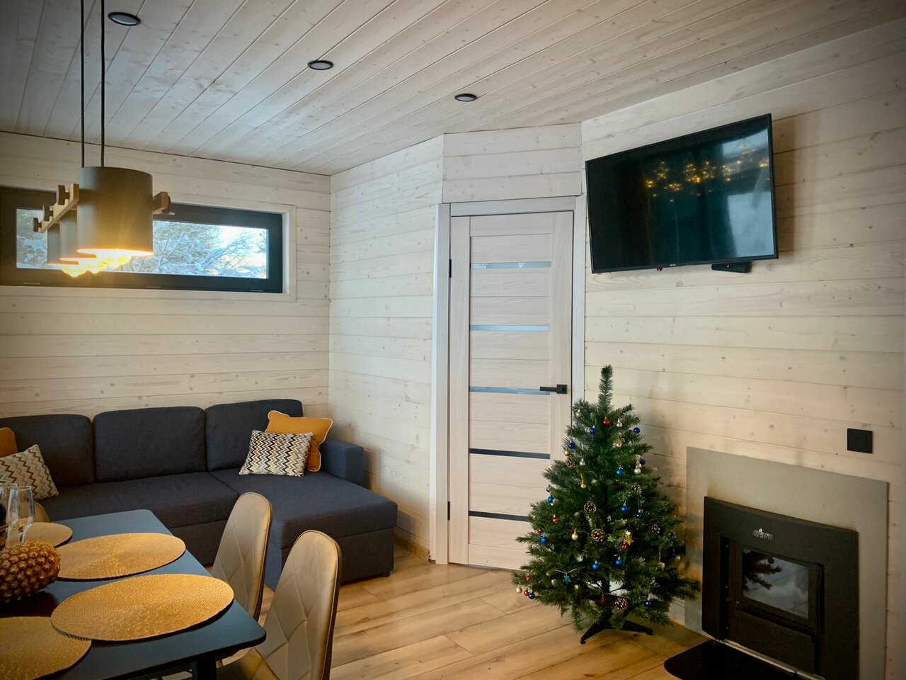 Удобства: номера с кухонными уголками, телевизорами, феном; бесплатная парковка, терраса, камин. Для гостей — баня, сауна, детская площадка, зона для пикника.
