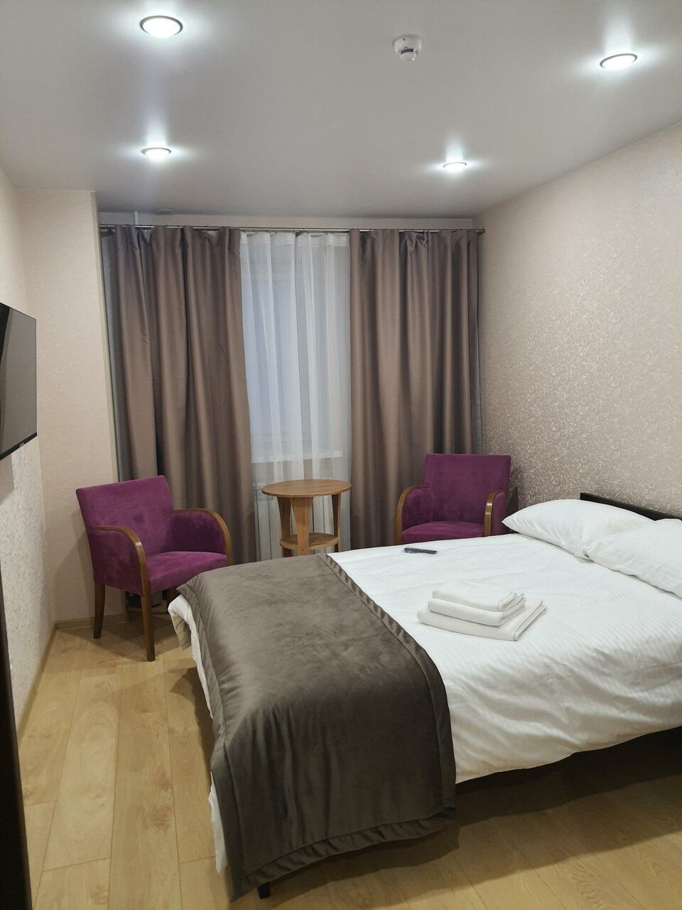 Двухместный номер с кроватью Комфорт. Собственная душевая кабина и туалет. В номере: двуспальная кровать, телевизор, кресла, кофейный столик, шкаф. Кухня общая.ресепшн пн-пт с 10 до 18.00сб-вс только удаленное заселение до 18.00