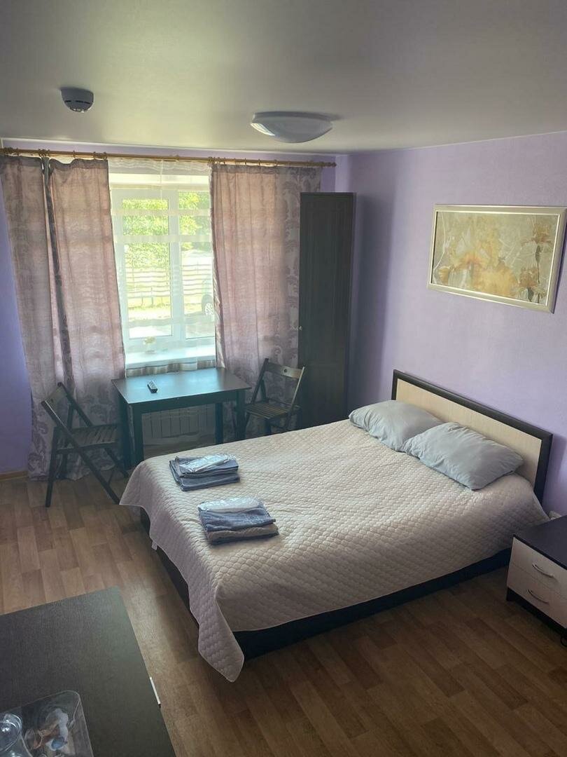 Номер включает: двуспальную кровать, телевизор, WiFi, стол, микроволновую печь. Санузел.
