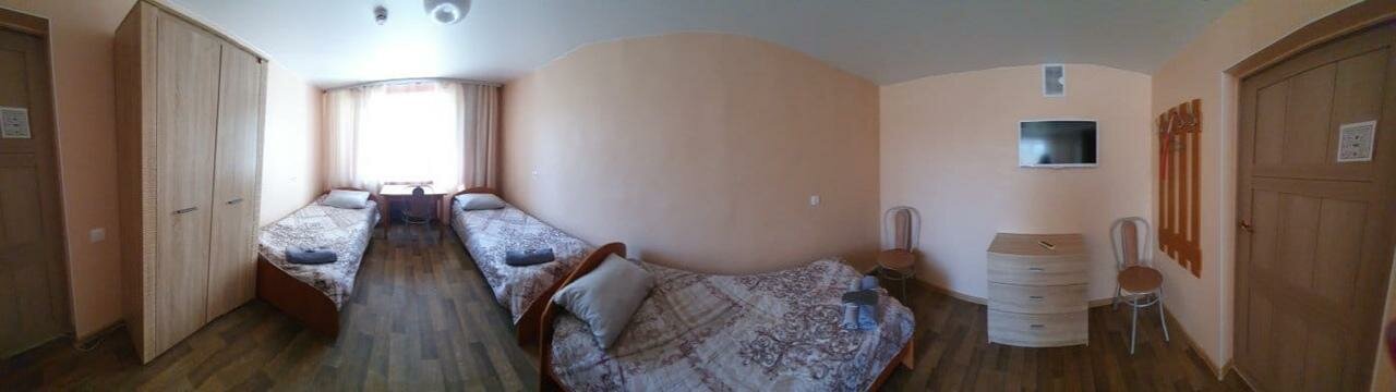 Номер включает: три односпальные кровати, комод, телевизор, WiFi, стол, микроволновую печь. Санузел в блоке на 2 номера. Оказываем трансфер.