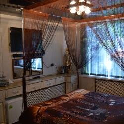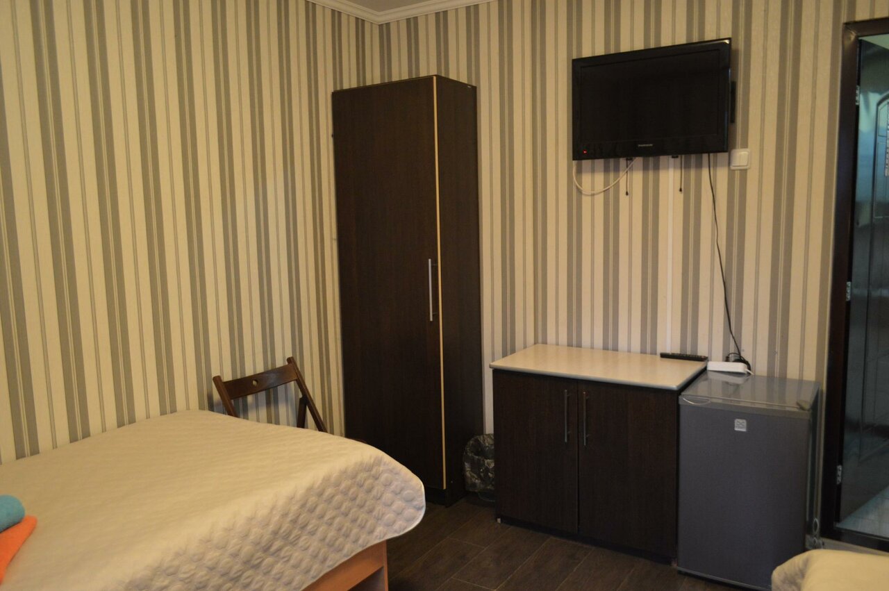 Номер включает: двуспальную кровать, комод, телевизор, холодильник, микроволновку, бесплатный WiFi. Санузел.