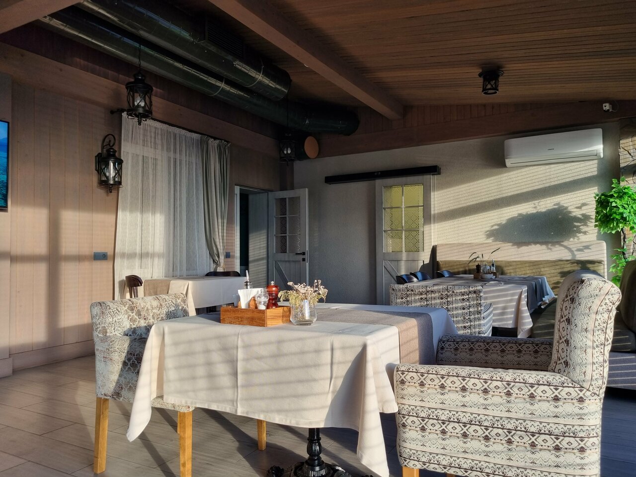 - Возможность выбора номера.; Высокий уровень сервиса.; Красивая подача блюд.; Возможность посещения с маленькими собаками.; Комфортные кровати и постельное бельё.