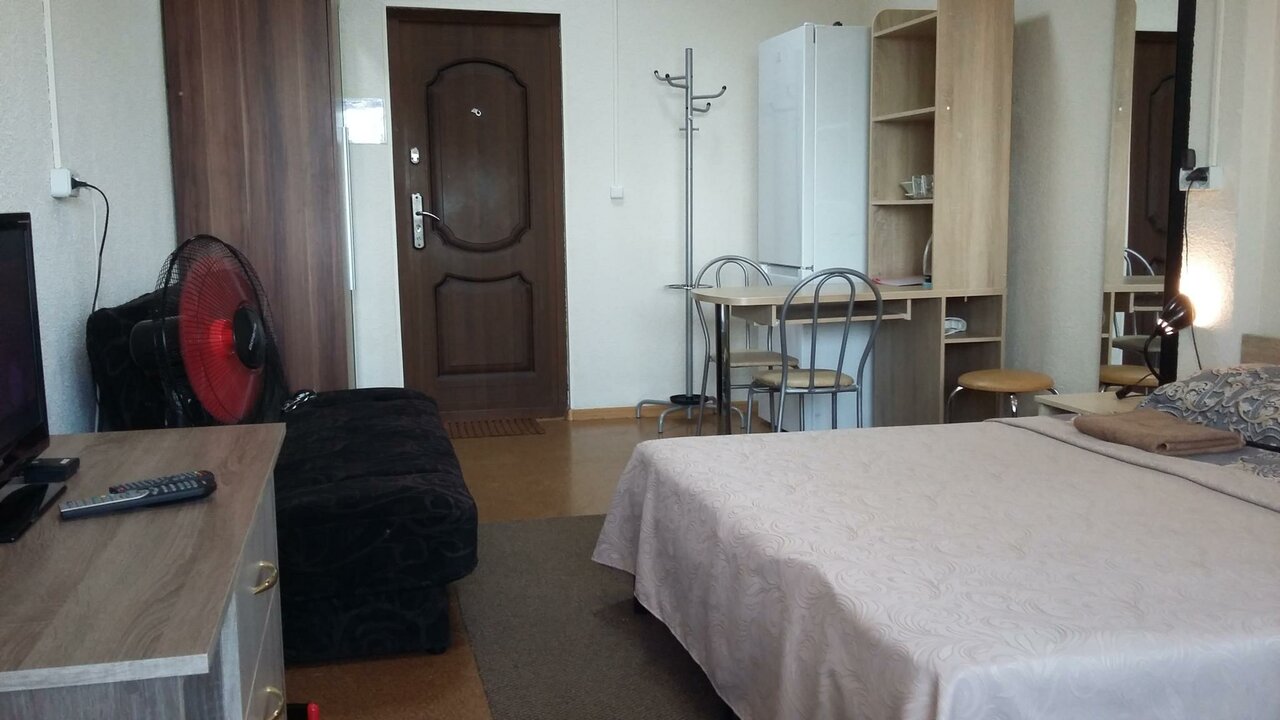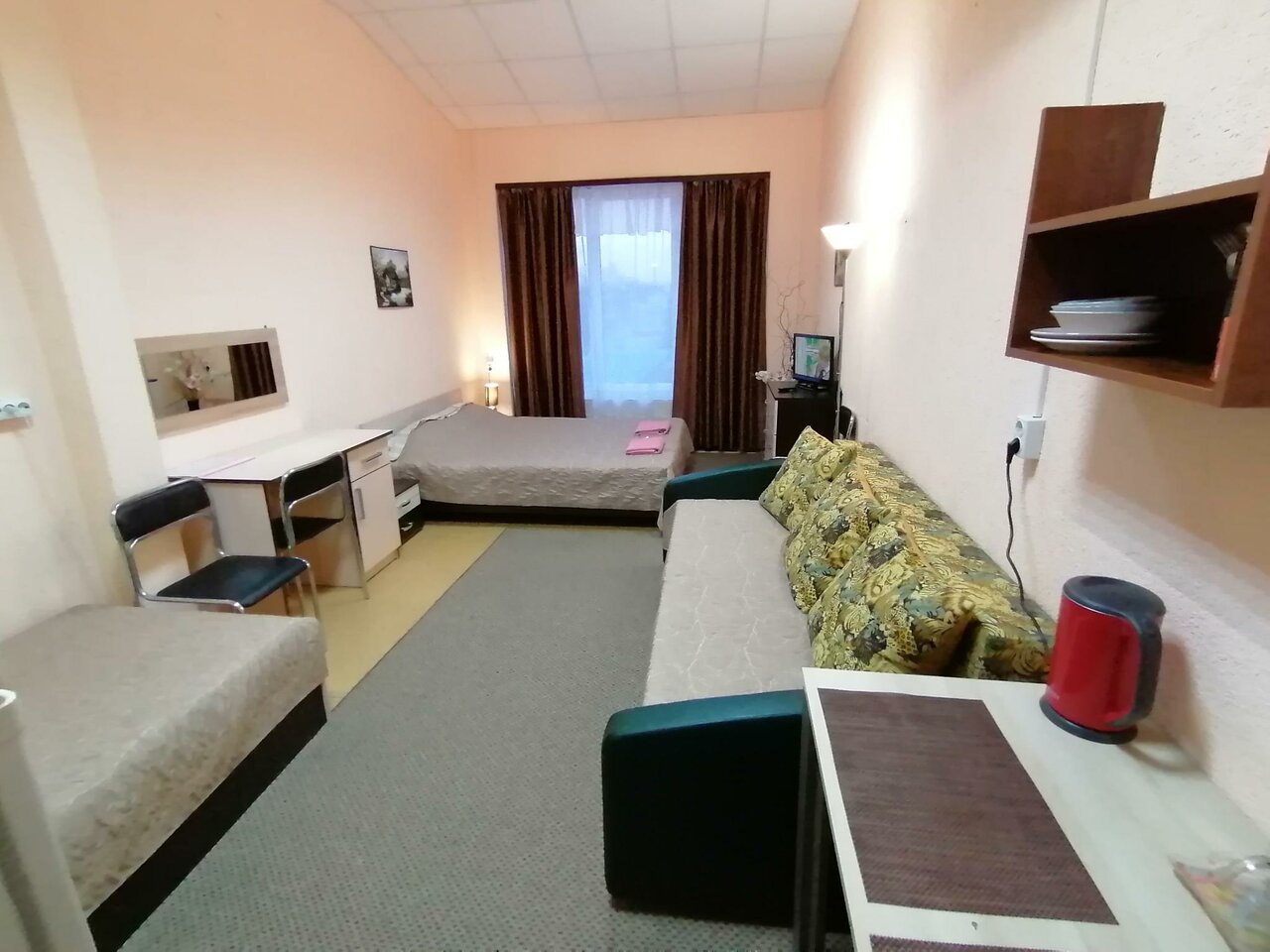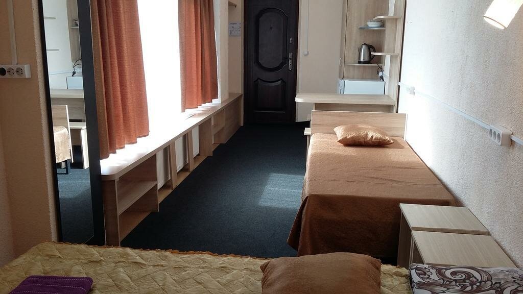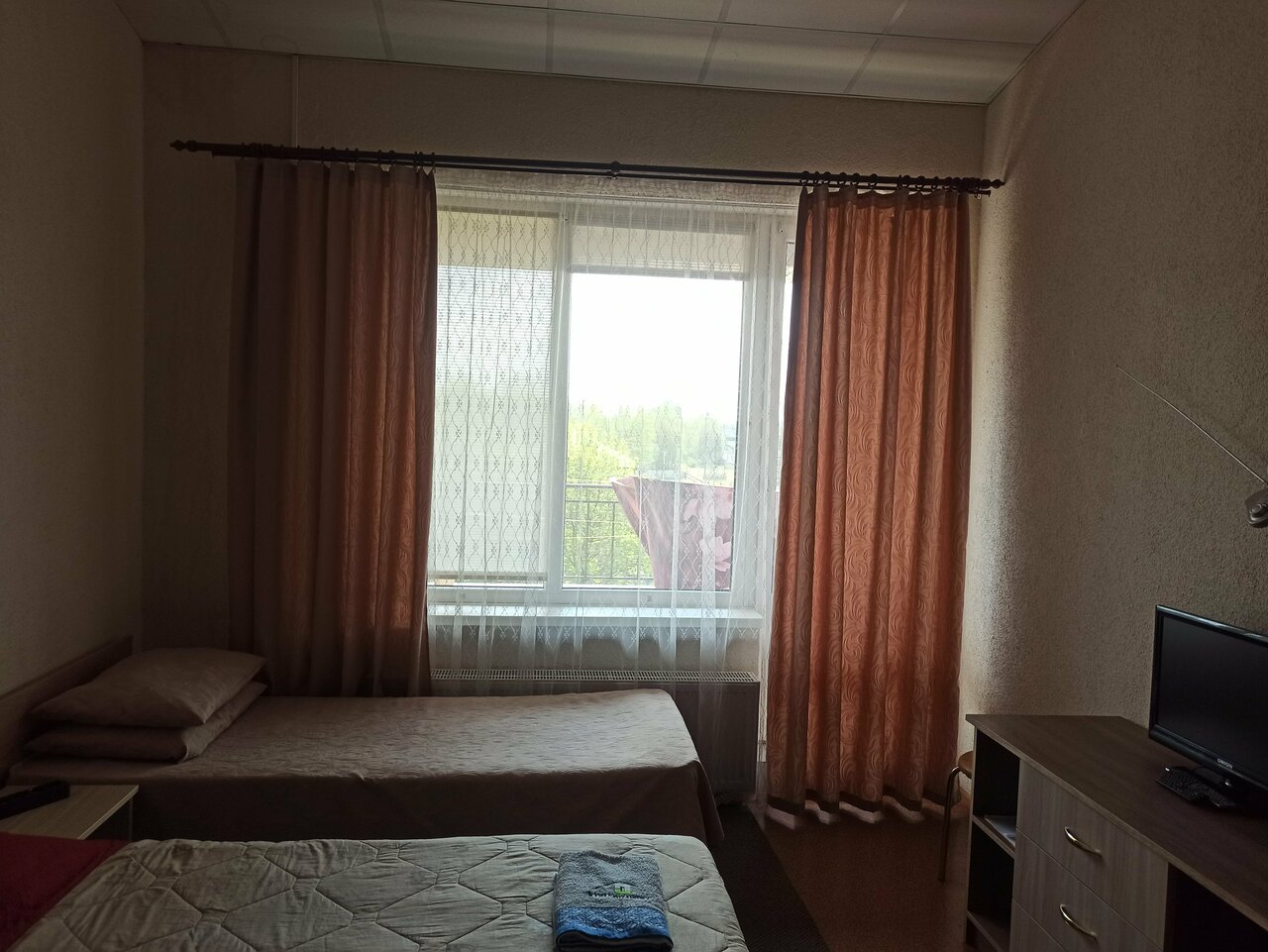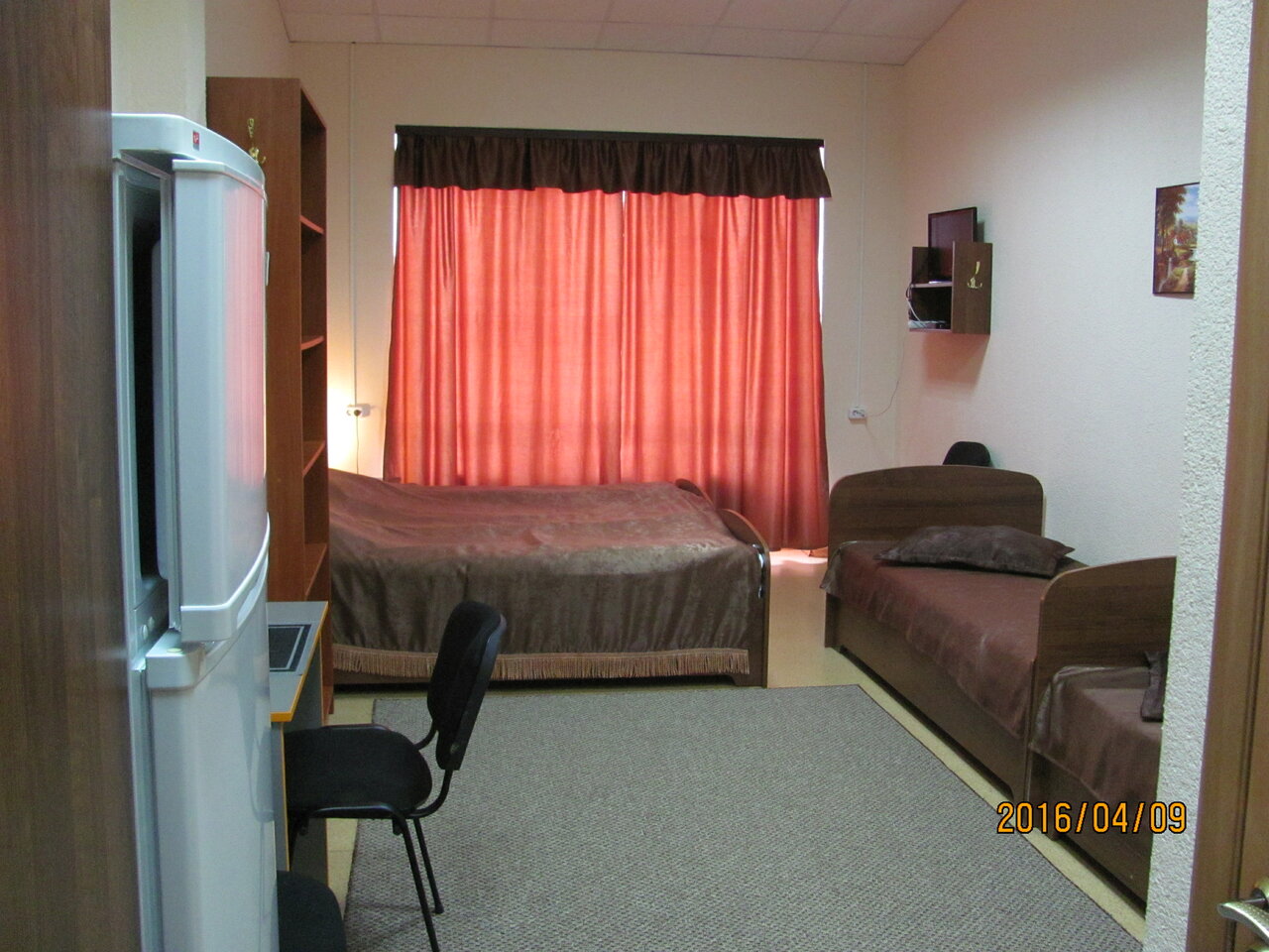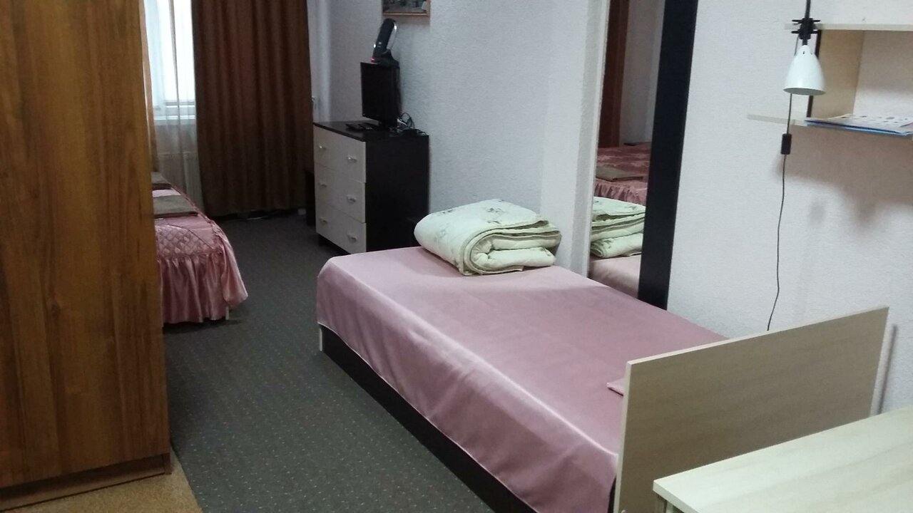 За эти деньги — это лучшее! Номера уютные, чисто. Это не гостиница 3 звезды, но и цена 500 руб.в сутки. В номере есть всё для ночлега: шкаф, холодильник, чайник, посуда. Везде ковровое покрытие. Душевая и туалет на этаже, запирается на ключ, чисто, напор воды хороший, вода горячая. Вид из окна у нас был хороший, огромные окна и удобно оформлены батареи, можно сидеть.