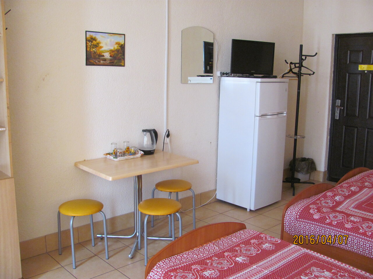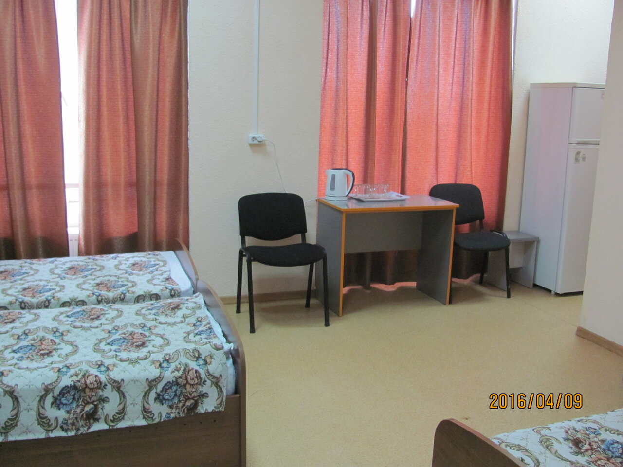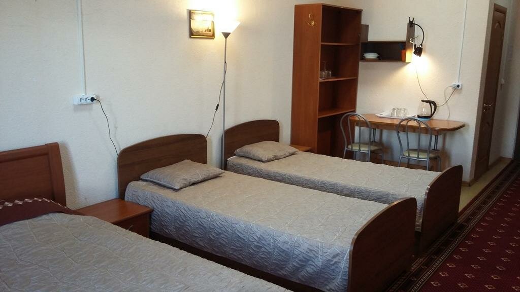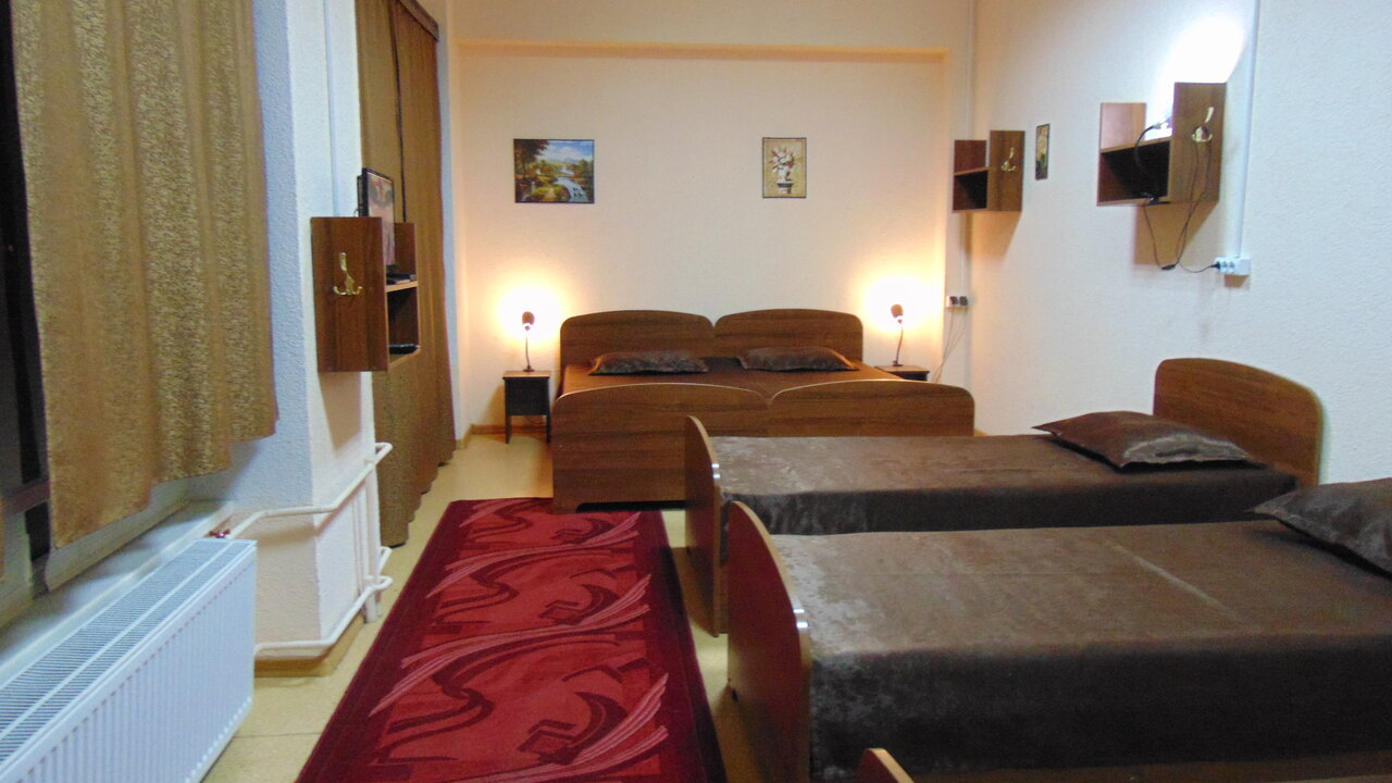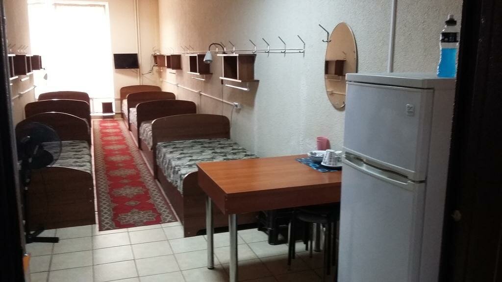 У нас был пятиместный номер. Чисто. Три односпальных кровати и одна двуспальная. А номере телевизор, холодильник, чайник, посуда, вентилятор. Два стола, стулья. Много розеток! Санузел. На этаже кухня, где можно приготовить, разогреть. Очень приветливый персонал. Единственный минус -плохая звукоизоляция)